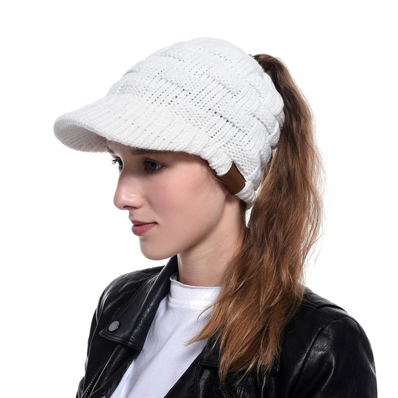 Для женщин ребристая Трикотажная Шапочка хвост зимний теплый вязаны...