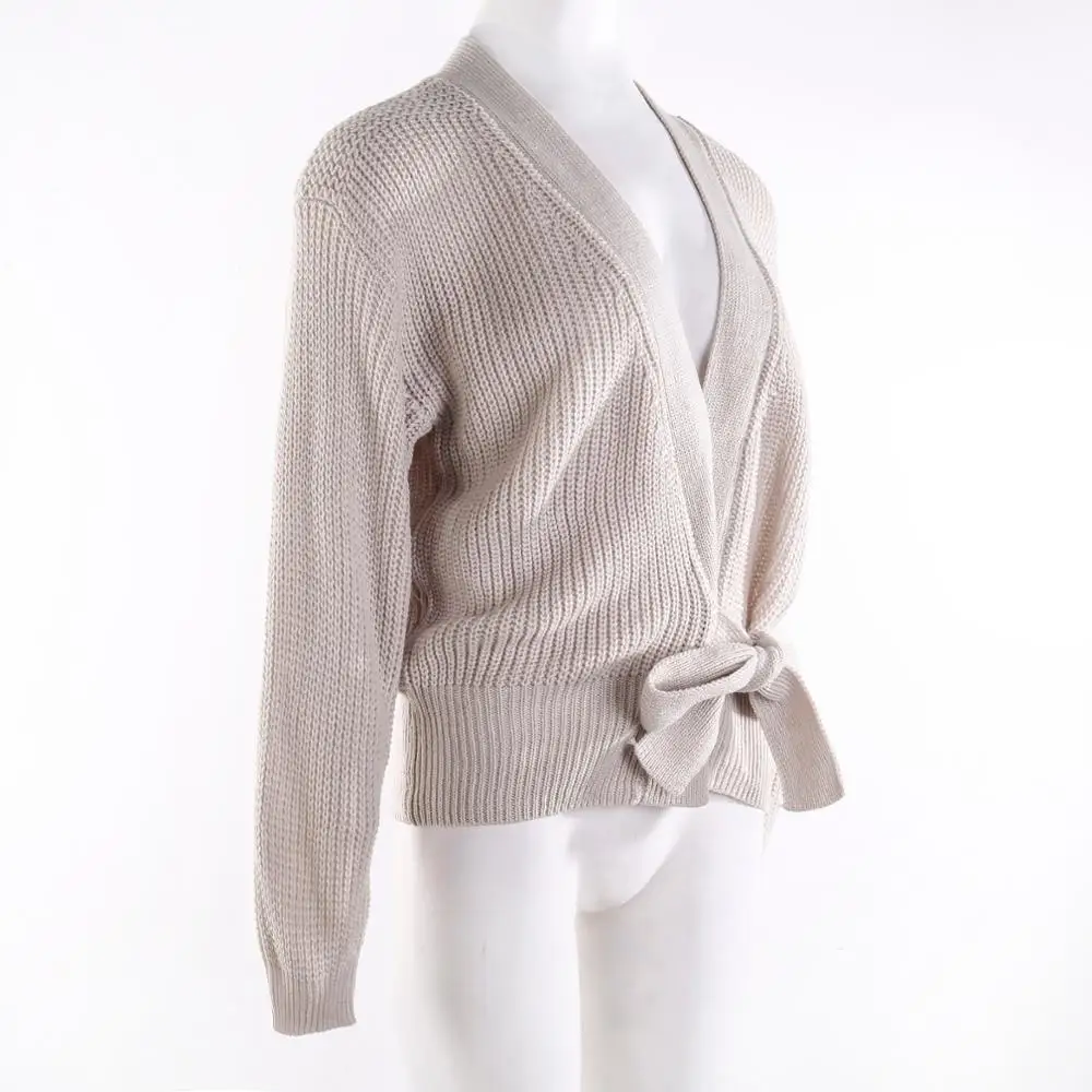 Женский кардиган на завязках, Однотонный свитер с V-образным вырезо...