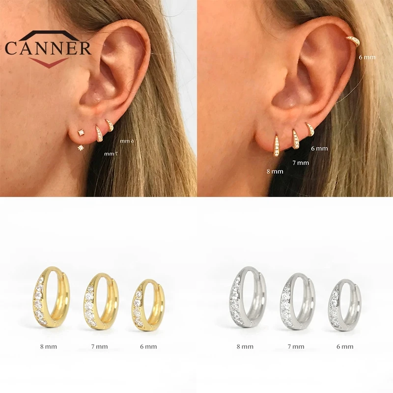 Женские серьги-кольца CANNER из стерлингового серебра 925 пробы с цирконием, серьги в стиле пирсинга круглая серьга круга, ювелирные изделия