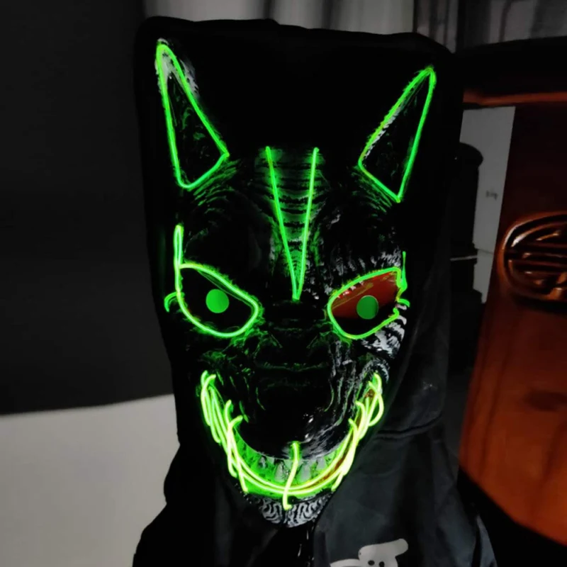 Светящаяся маска на все лицо со светодиодной подсветкой для мужчин и женщин, для Хэллоуина, вечеринки, голова волка, призрак, клоун, ужас, Новинка