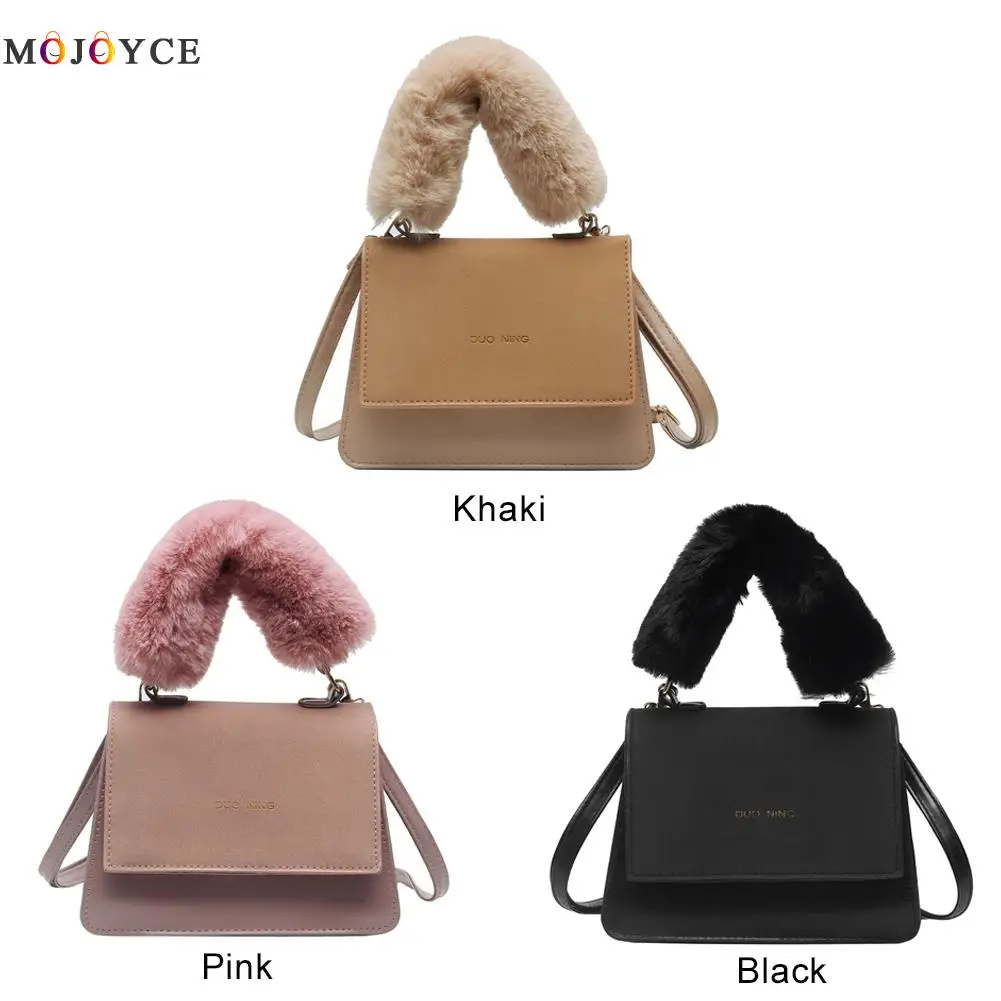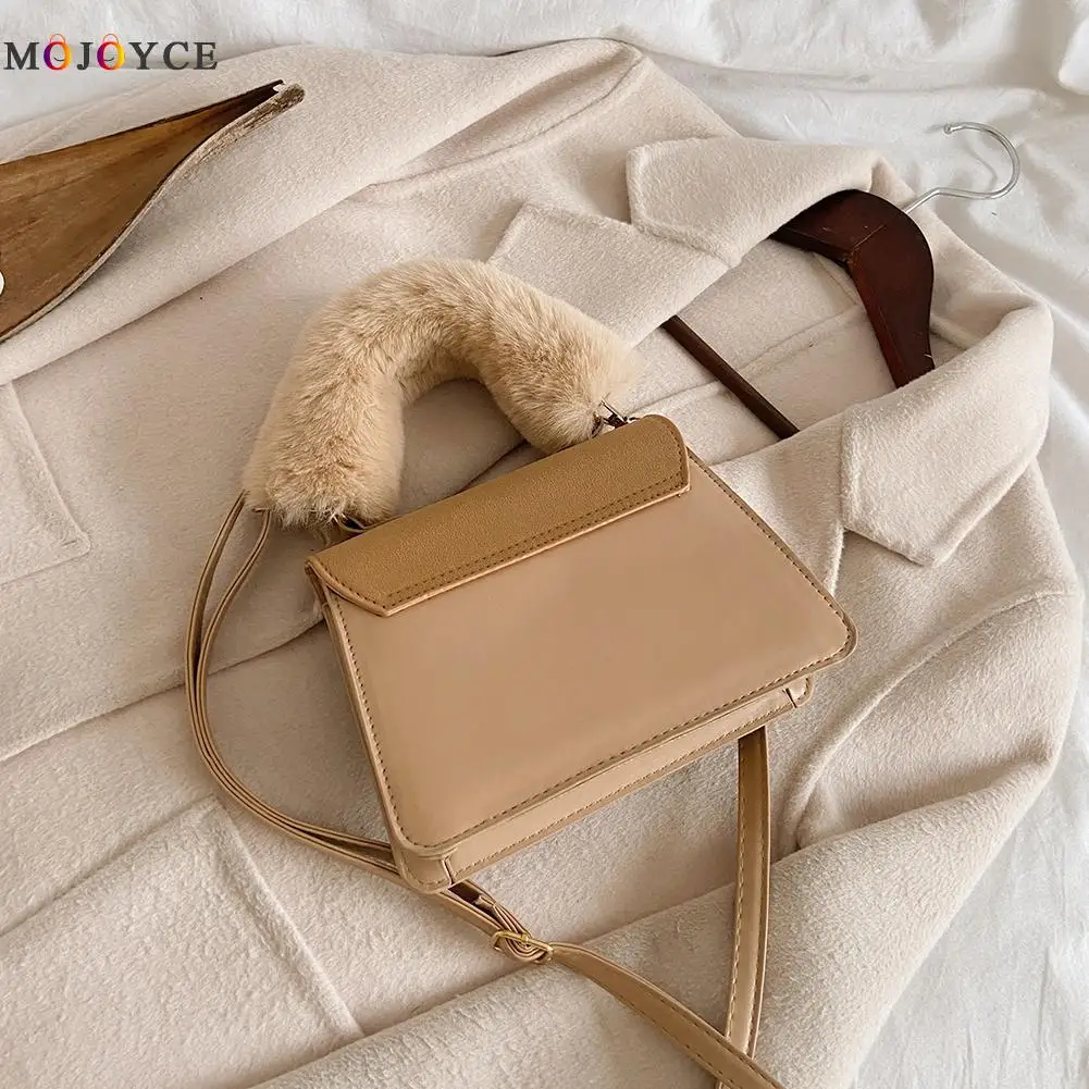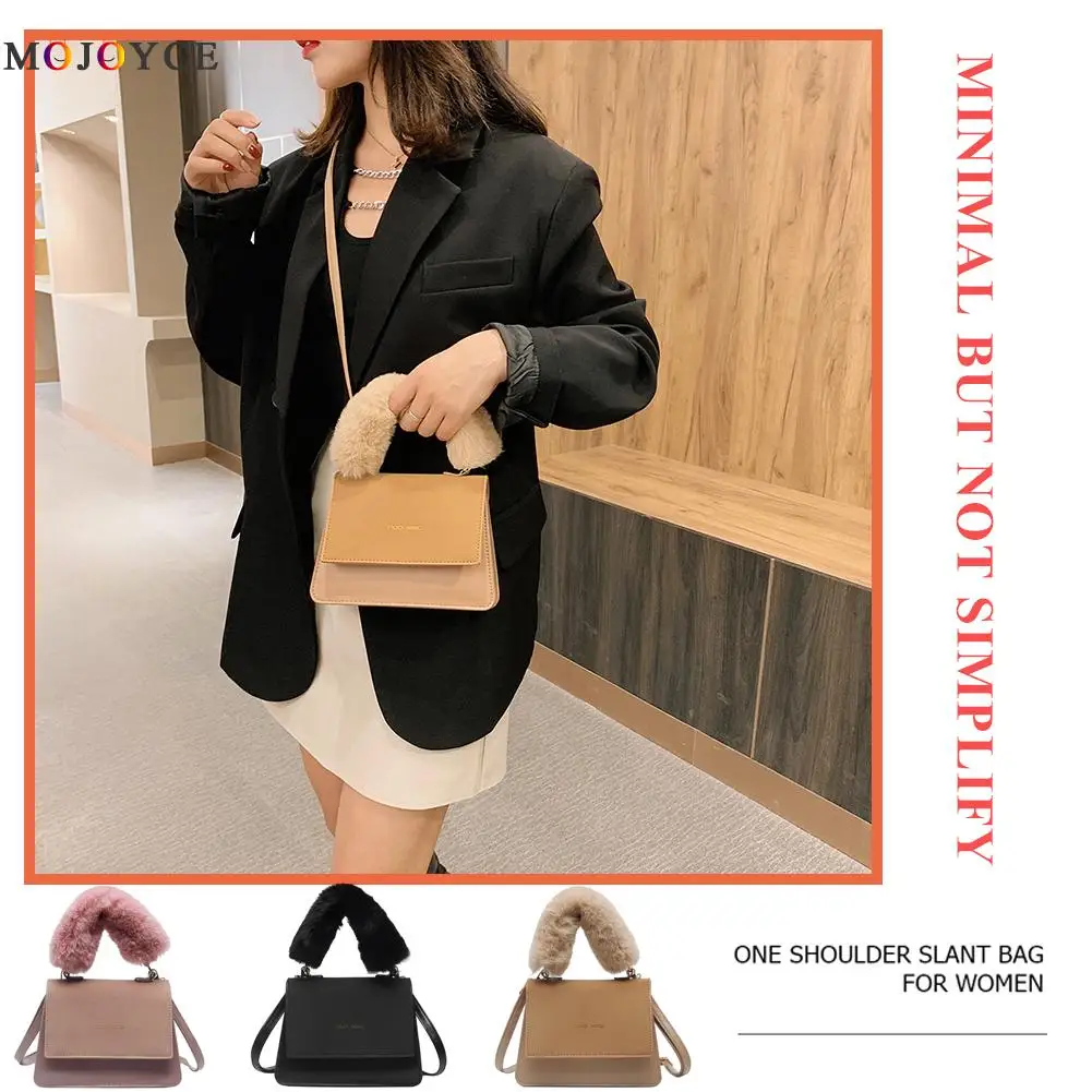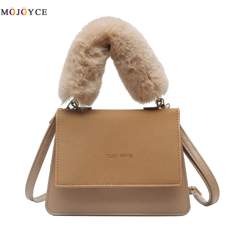 Простая женская сумка через плечо из искусственной кожи, плюшевая сумка через плечо с верхней ручкой, повседневная однотонная Сумочка, портативный дорожный клатч