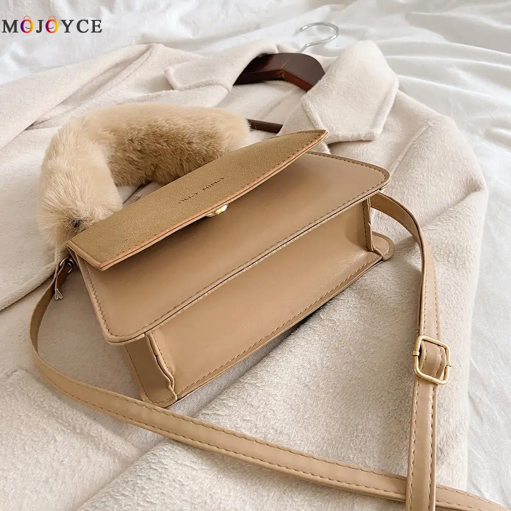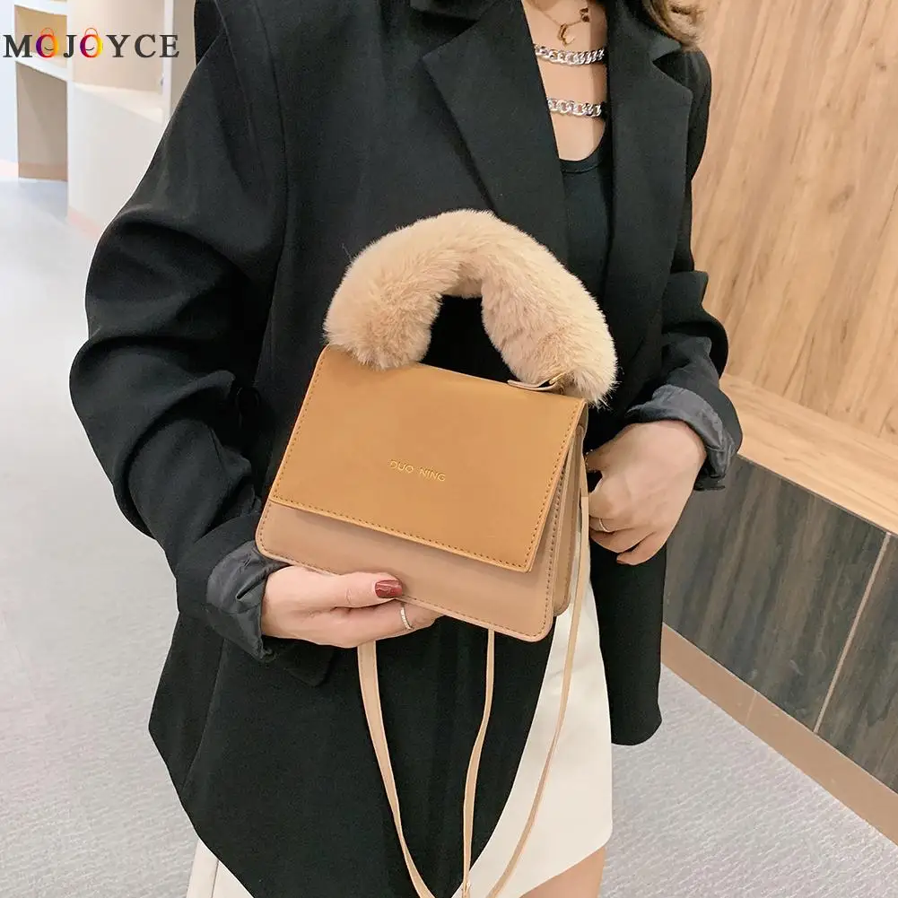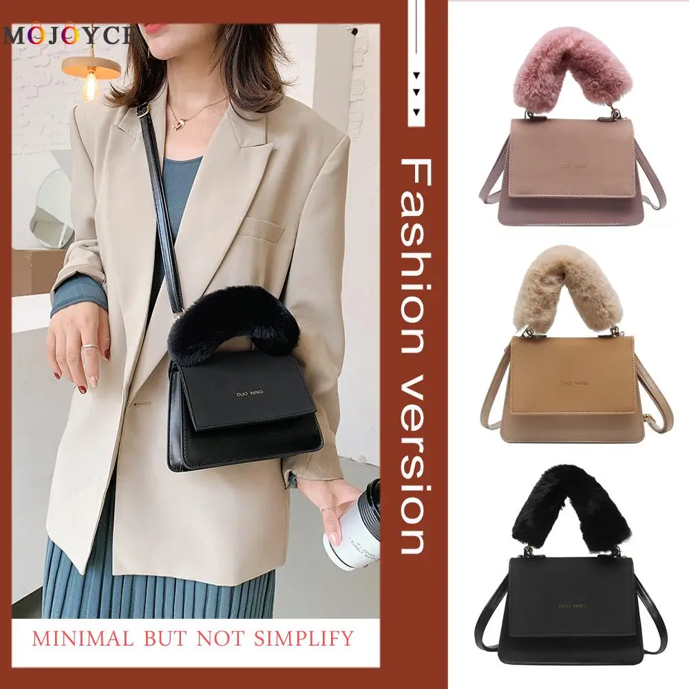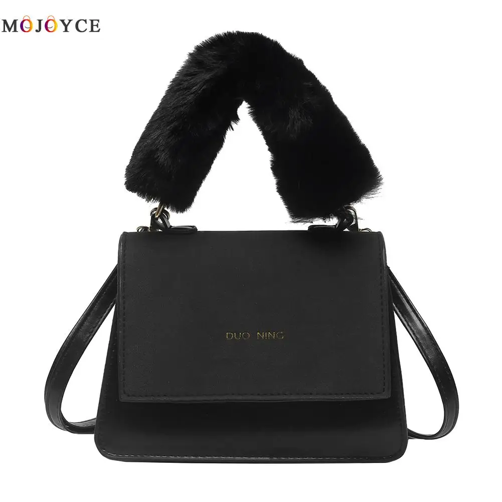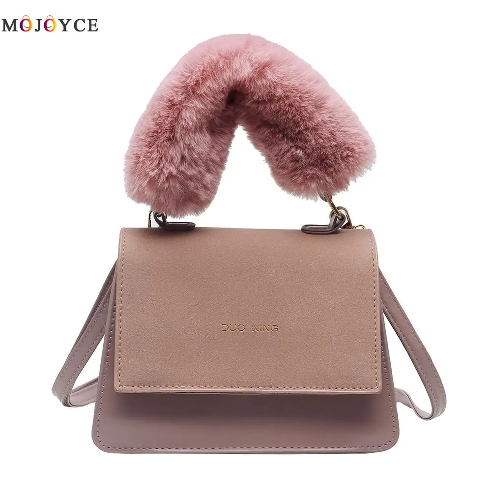 Простая женская сумка через плечо из искусственной кожи, плюшевая сумка через плечо с верхней ручкой, повседневная однотонная Сумочка, портативный дорожный клатч