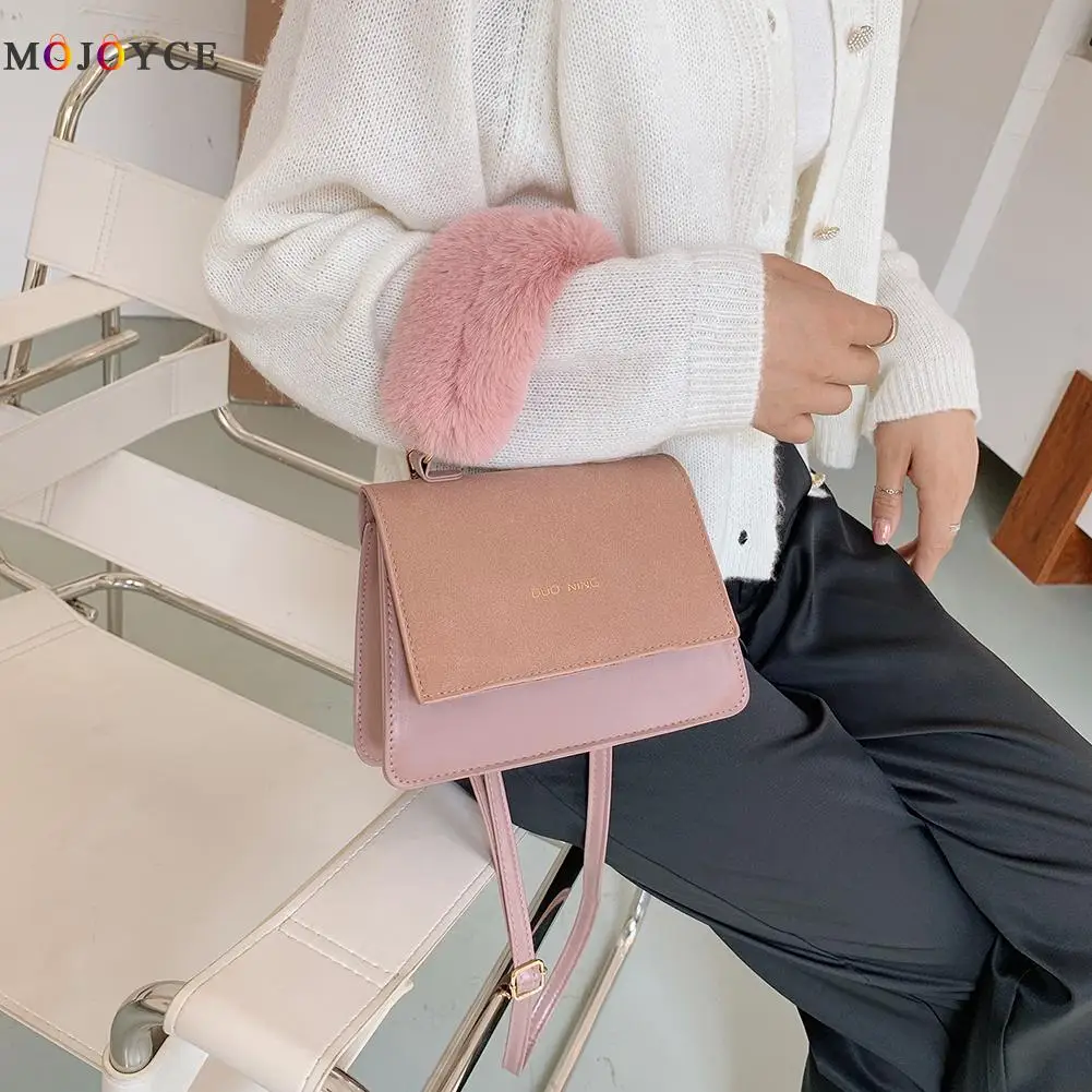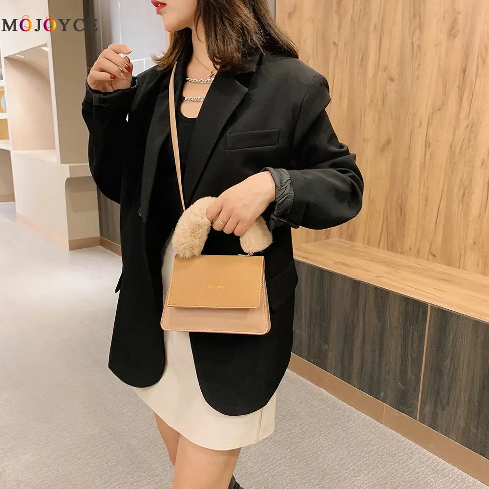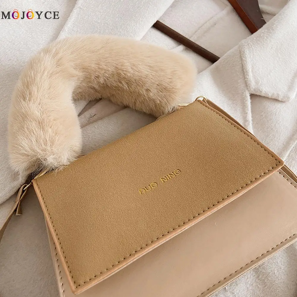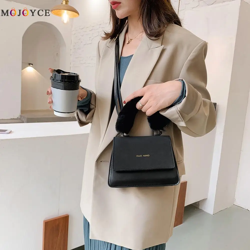 Простая женская сумка через плечо из искусственной кожи, плюшевая сумка через плечо с верхней ручкой, повседневная однотонная Сумочка, портативный дорожный клатч