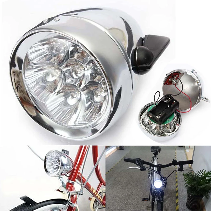 Светодиодный фонарь для велосипеда, передсветильник ческий велофонарь в стиле ретро с углом обзора 160 , серебристая фара черный светильник, Аксессуары для велосипеда