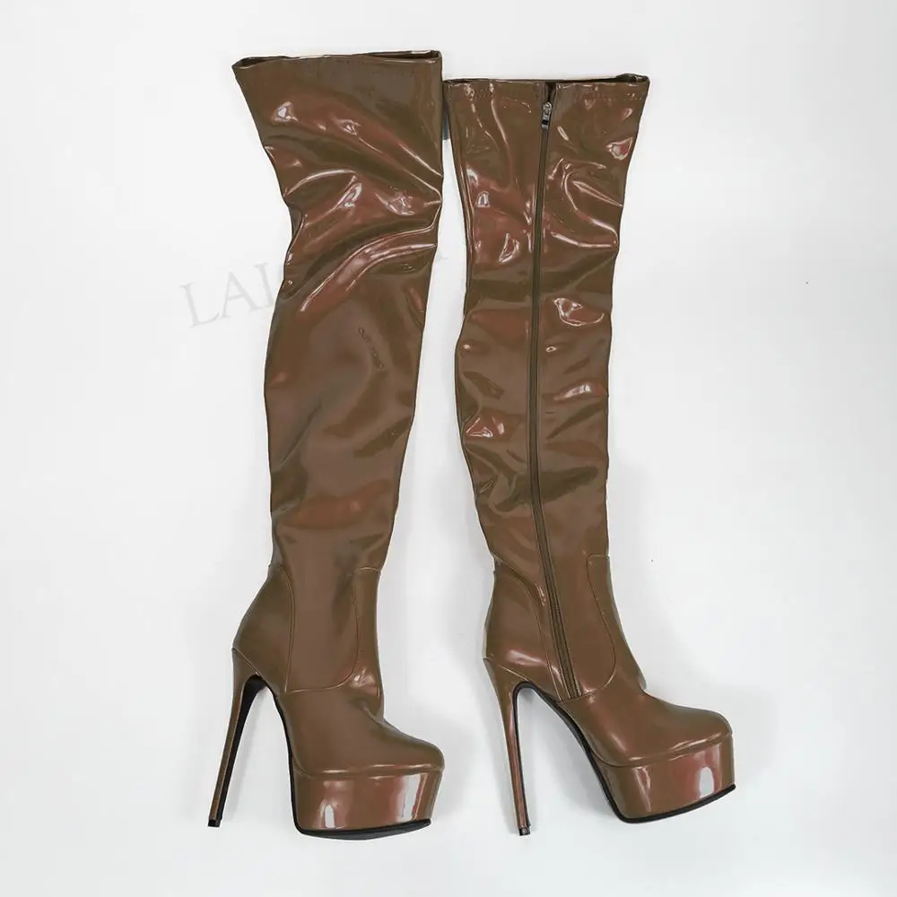 LAIGZEMсексуальные женские сапоги до бедра, высокие сапоги на молни...