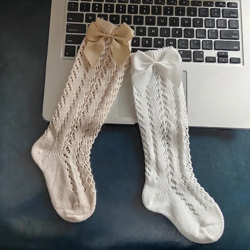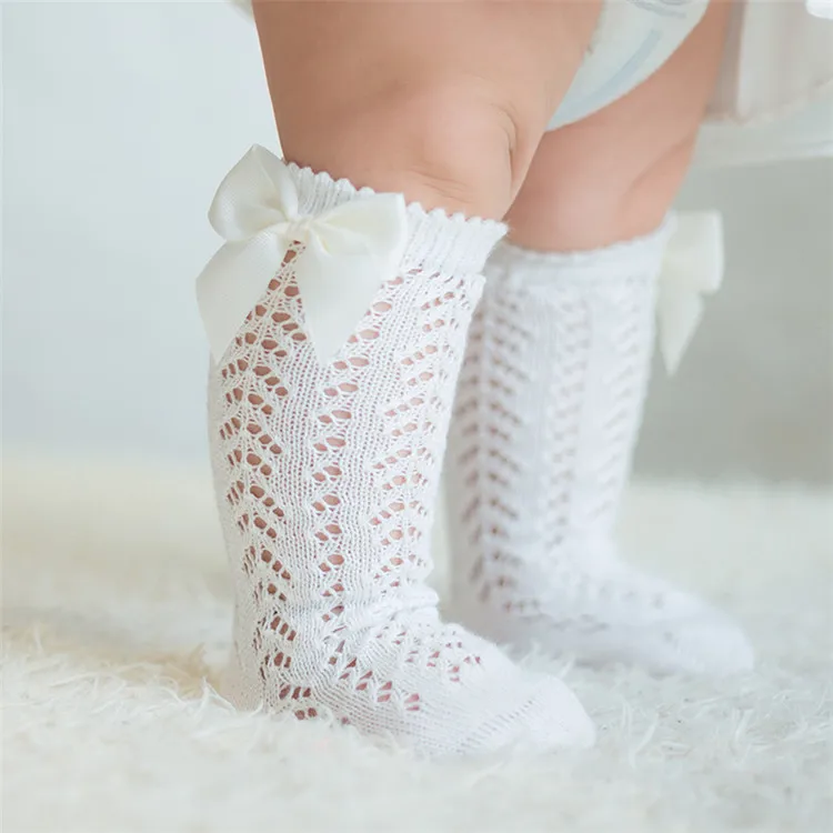 Детские летние сетчатые тонкие носки Модные Детское для девочек с бантом гольфы для мальчиков и девочек, однотонные, белые, розовые