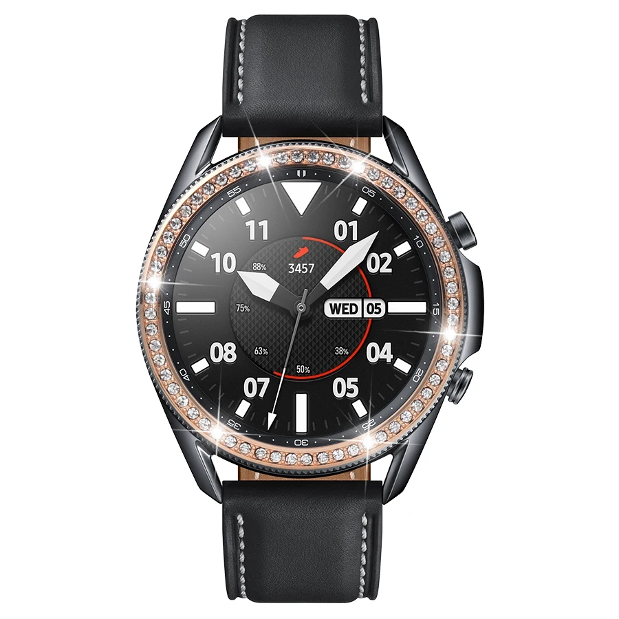 Безель на самсунг воч 3- 40мм очень классный НЕ ДЕШЕВИТ. Выполнен очень достойно.Цвет розовое золото.Камера не передает грамотно цвет в жизни выглядит оч хорошо лучше чем на фото. Пока не знаю как долго не облезет краска и не вывалятся стразы.Но у меня есть набор по размерам ювелирных страз для бижутерии и часов...если выпадет какая -заменю без проблем.Важно!!!Безель наклеивается на тонкую клеевую пленку поверх безеля часов а я думала что одевается колпачным(чехольным) методом ...нет, безель просто наклеивается сверху.Рекомендую товар 100%.