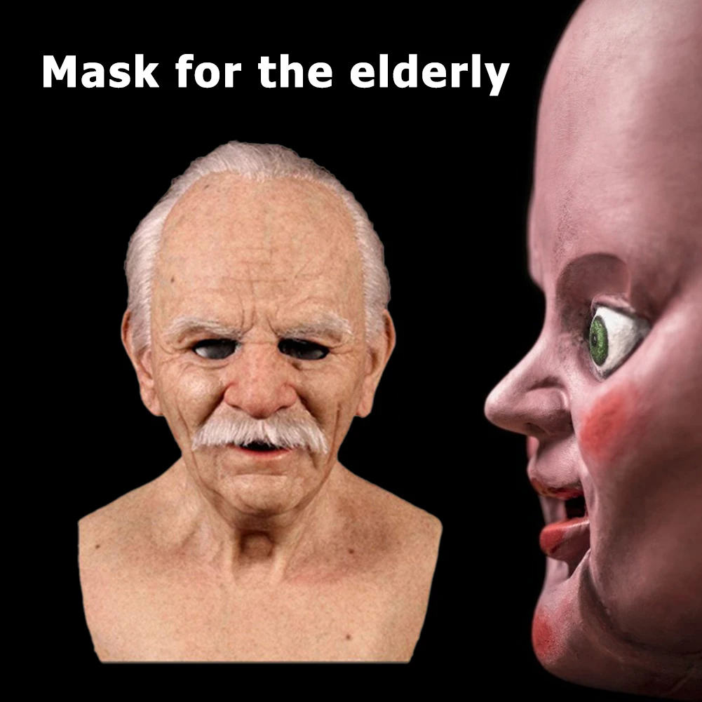 Страшная маска для стариков, страшная латексная маска на всю голову...