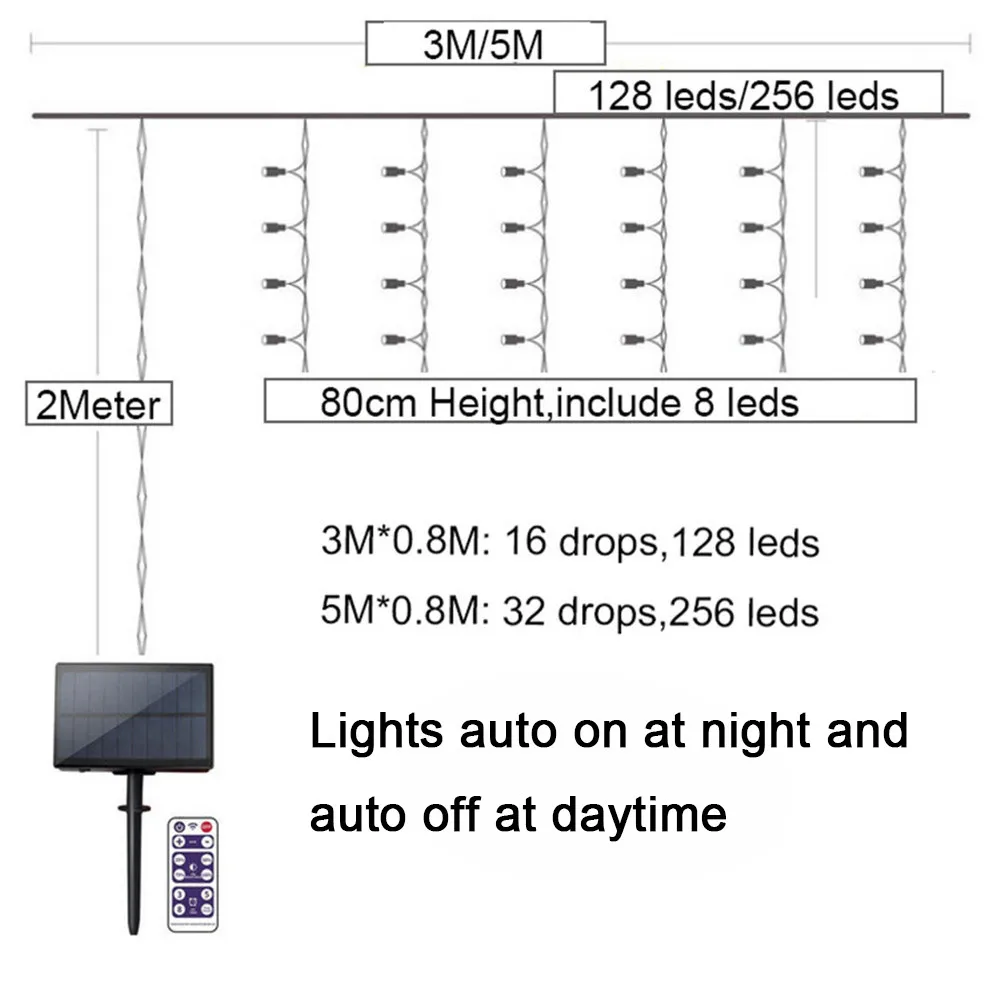СВЕТОДИОДНАЯ Гирлянда-сосулька на солнечной батарее, 3 м5 м, водонепроницаемая уличная Гирлянда-занавеска для праздника, Рождества, свадьбы, вечеринки