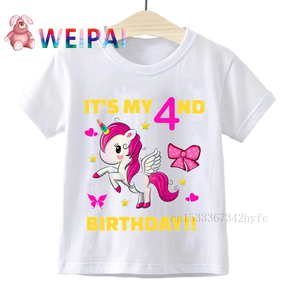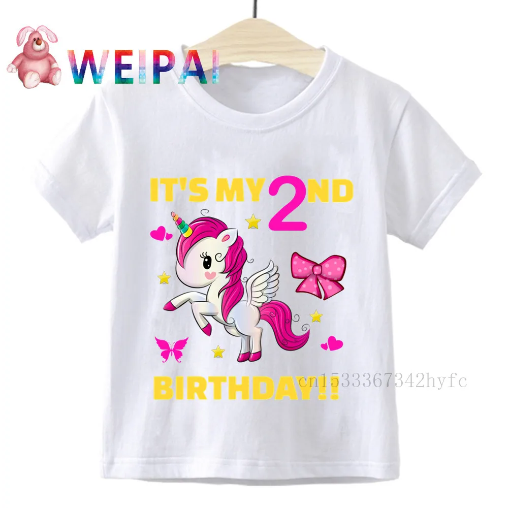 Футболка с принтом единорога на день рождения для детей 1, 2, 3, 4,...