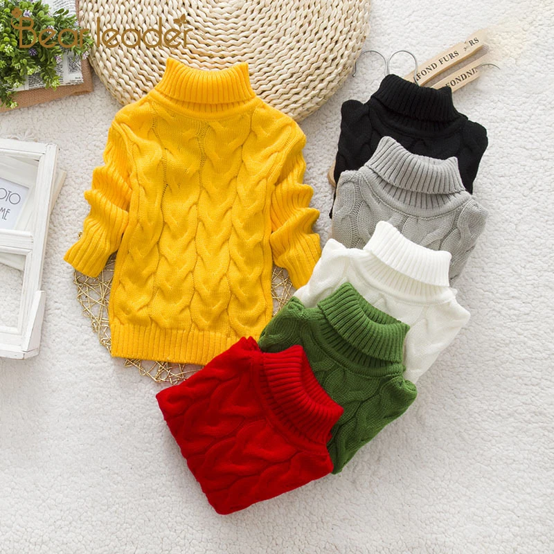 Bear LeaderНовинка; Рождество; Чистый цвет; Сезон осень-зима; Плотная Водолазка для мальчиков и девочек пуловер с высоким воротником; Свитер длинный свитер