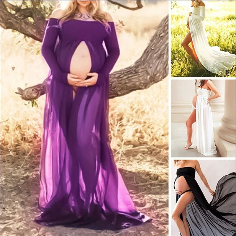 Платье для беременных, однотонное шифоновое длинное платье-макси с разрезом спереди для кормящих женщин