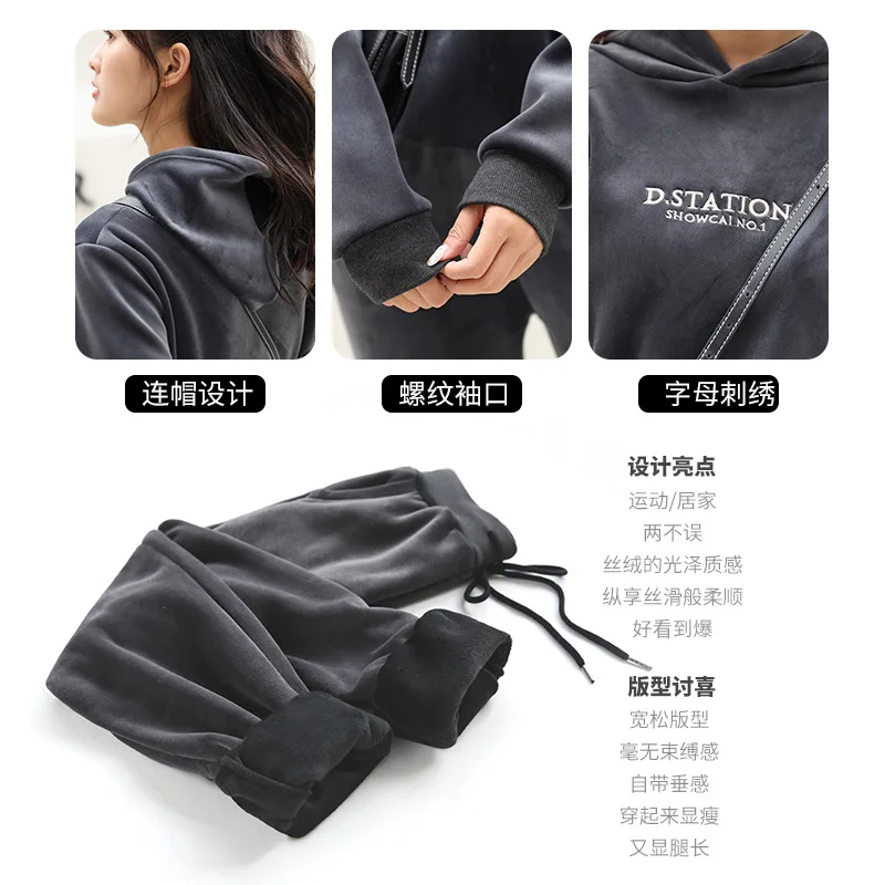 Теплый зимний плотный Женский комплект из 2 предметов, спортивные костюмы, женский комплект из двух предметов, топ и брюки, Корейская одежда, спортивный костюм