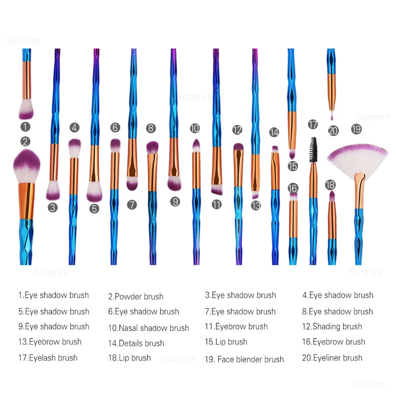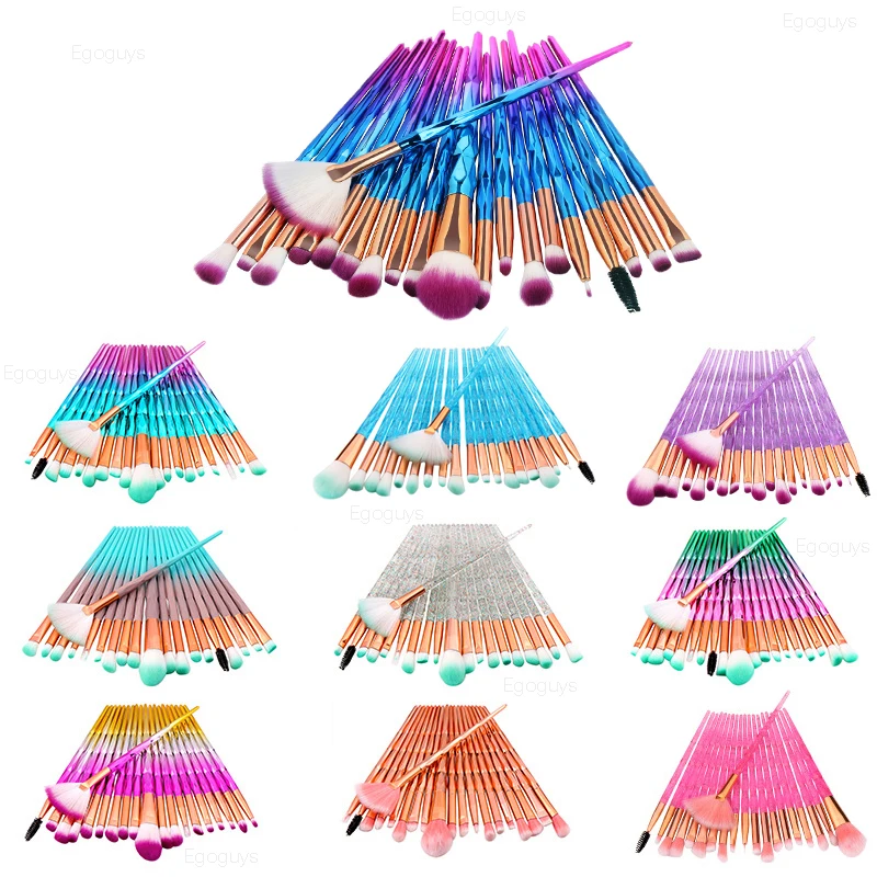 Набор профессиональных градиентных алмазных кистей для макияжа, 20 шт., тени для век, основы, пудры, подводки, ресниц, косметические кисти, инструменты для красоты