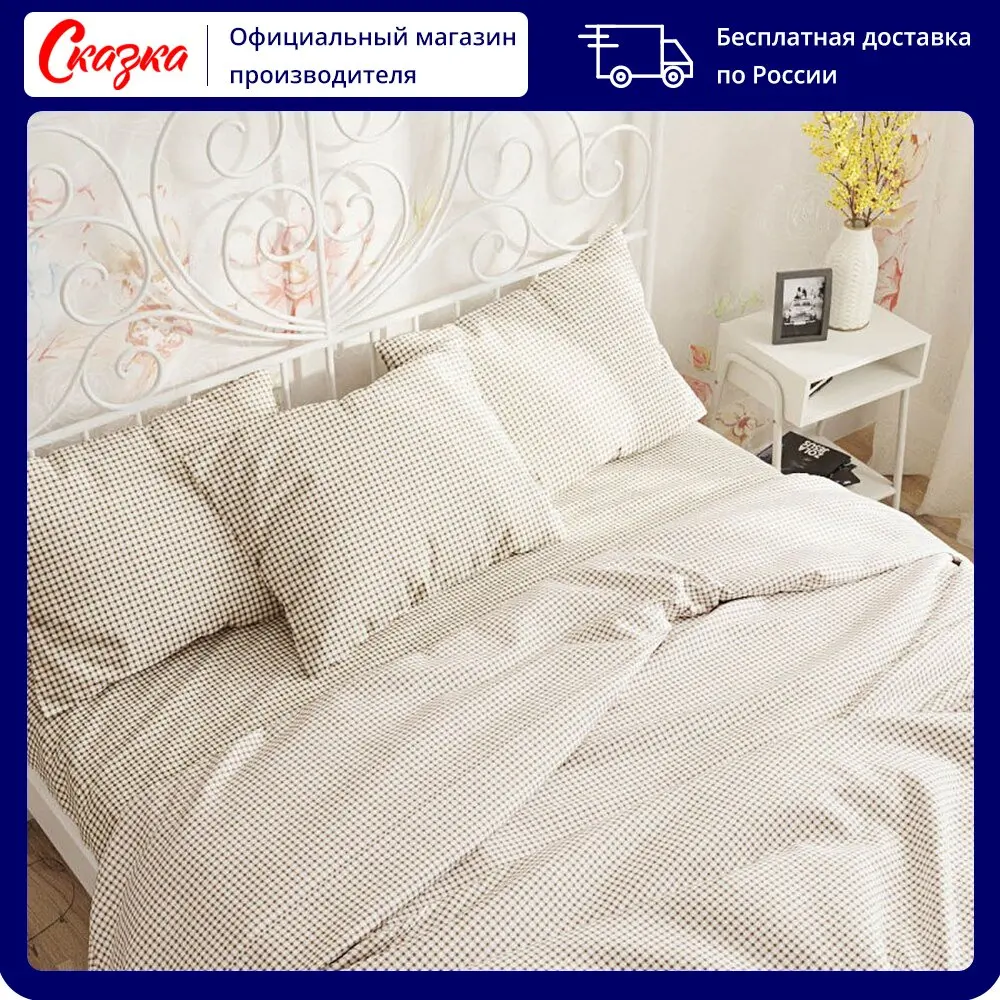 Простынь на резинке Сказка "Бежевая клеточка" 90х200 см, 120х200 см...