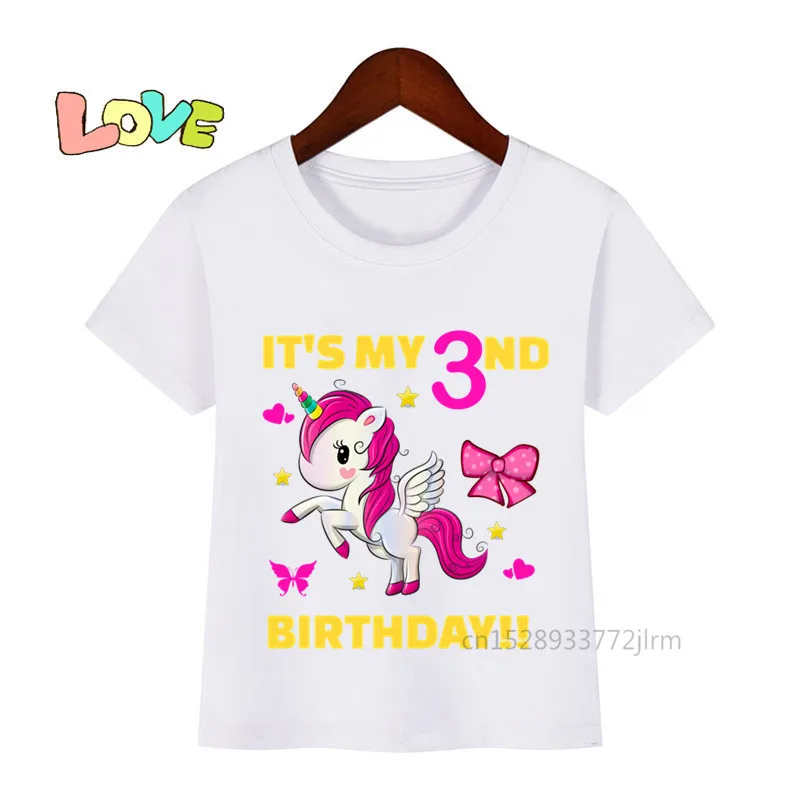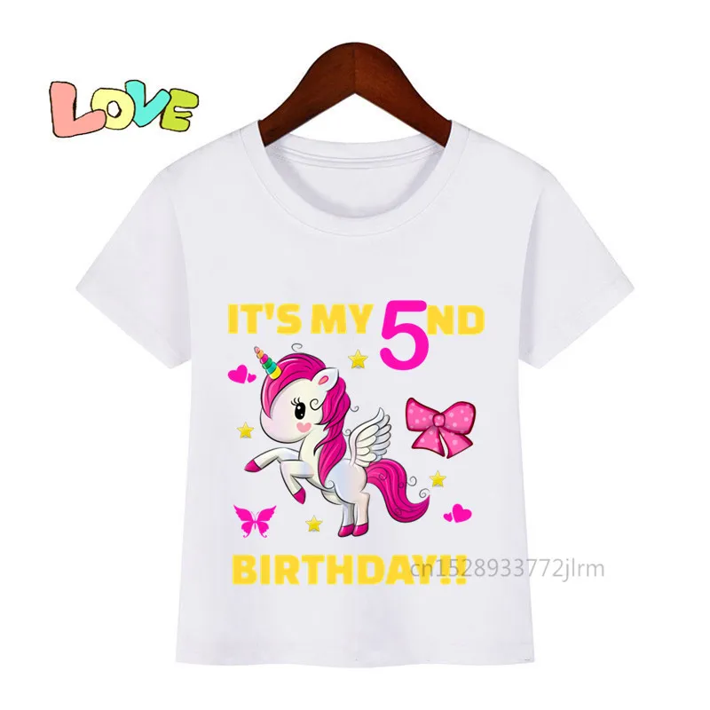 Детская футболка с мультяшным единорогом на 1-9 день рождения с цифрами Детские футболки на день рождения футболки для мальчиков и девочек Забавный подарок футболка подарок