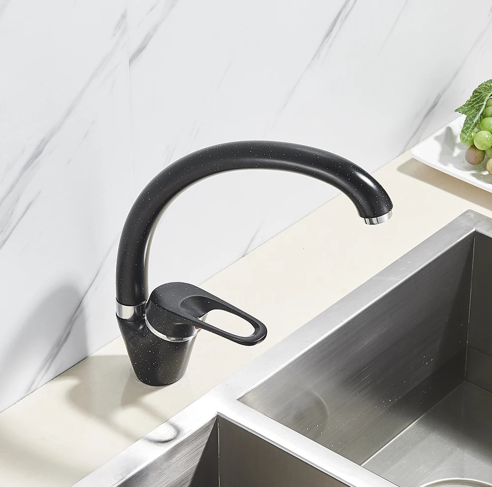 Uythner латунный черный смеситель для кухонной раковины смесители для горячей и холодной воды с одной ручкой поворотный излив смеситель для кухонной раковины