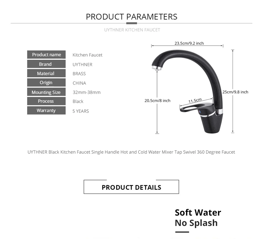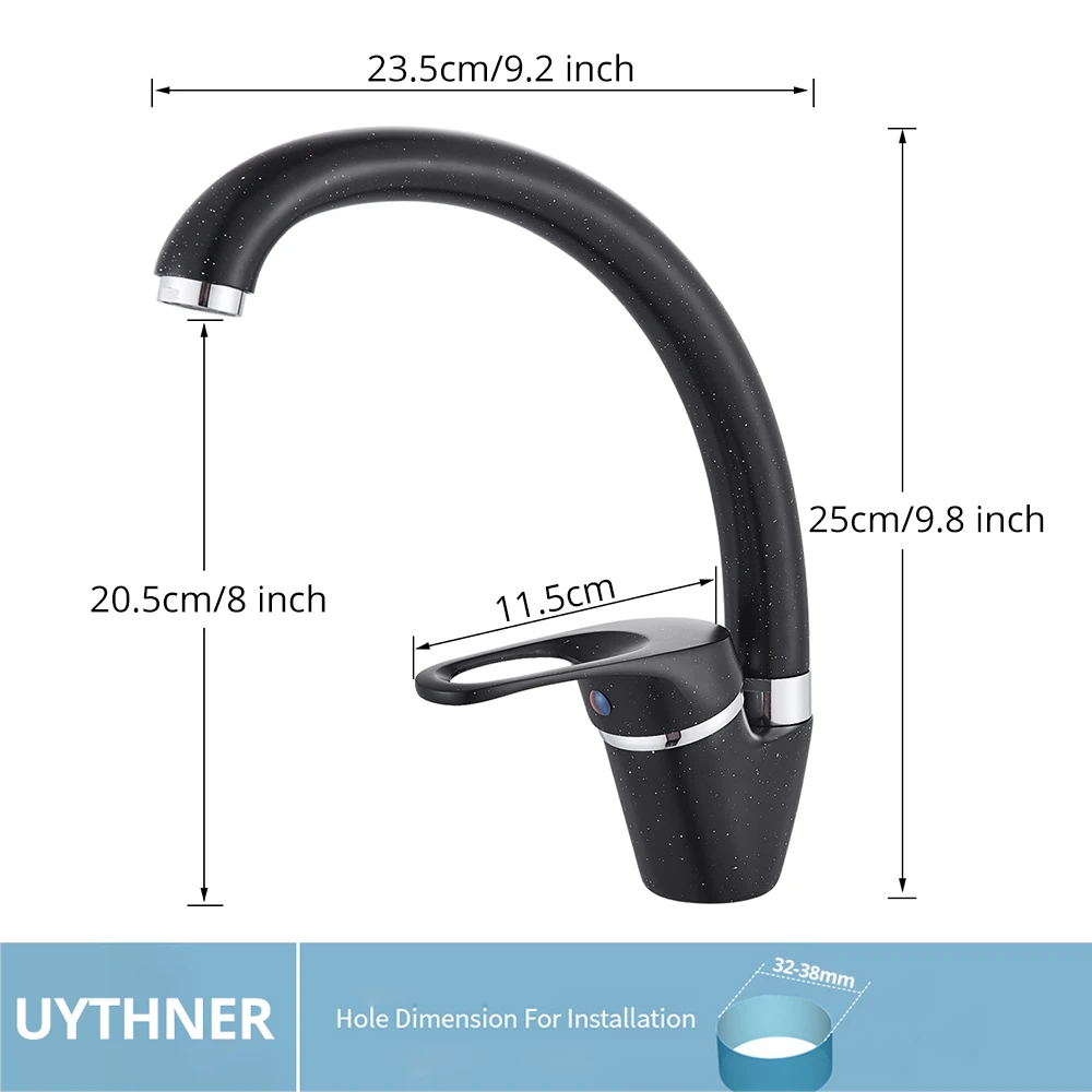 Uythner, латунный черный смеситель для кухонной раковины, смеситель для горячей и холодной воды, краны с одной ручкой, поворотный носик, кухонный смеситель для раковины воды