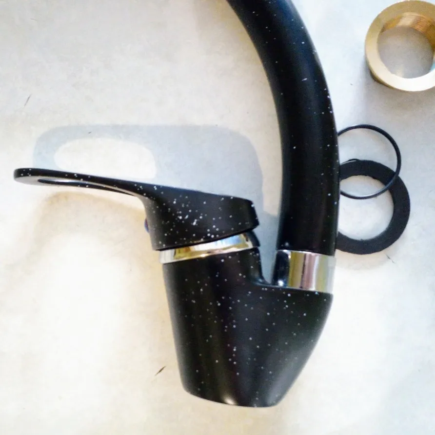 ✅ Отправка из Подольска, поэтому доставка в далекую российскую глушь составила всего лишь 10 дней. ✅ Смеситель пришел в картонной коробке, упакованным в тряпочный чехол. Так же в комплекте шли два металлических шланга для подачи холодной и горячей воды и инструкция на английском языке. ✅ Размеры смотрите на картинках свыше. ✅ Установка крана наипростейшая, нужно просто открутить все детали снизу и затем прикрутить металлические шланги. В конце закрепить смеситель на раковине. ✅ На конце крана расположен аэратор. Это устройство, которое рассеивает струю воды и насыщает её пузырьками воздуха. Аэратор уменьшает расход воды, предотвращает разбрызгивание. Пузырьки кислорода способствуют лучшему удалению в грязи и жира. Струя становится мягкой и мытьё в итоге комфортнее. Сам кран вращается на 360 градусов. ✅ Ну и конечно же обалденный внешний вид. Маленькие белые звёздочки на черном фоне крана смотрятся потрясающе. Этот кран украсит вашу раковину.