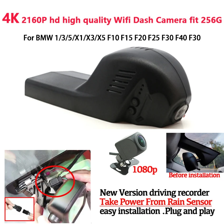 Новинка! Автомобильный видеорегистратор, 4K 2160P, двухъядерный, Novatek 96675, Wi-Fi, видеорегистратор для BMW 135X1X3X5 F10 F15 F20 F25 F30 F40 F30
