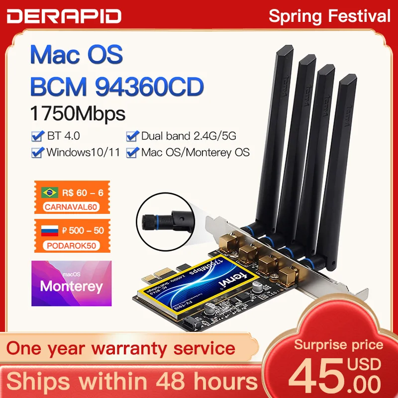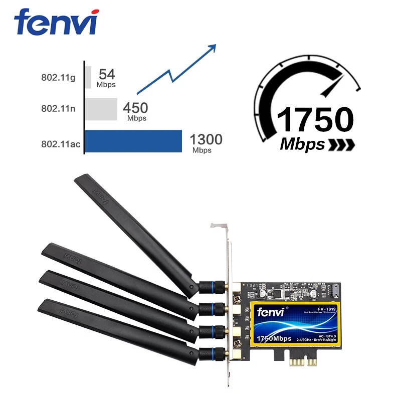 Адаптер Wi-Fi Fenvi T919 PCIe BCM94360, 1750 Мбитс, для MacOS Hackintosh Bluetooth 4,0 802.11ac 2,4G5 ГГц, двухдиапазонный Настольный ПК