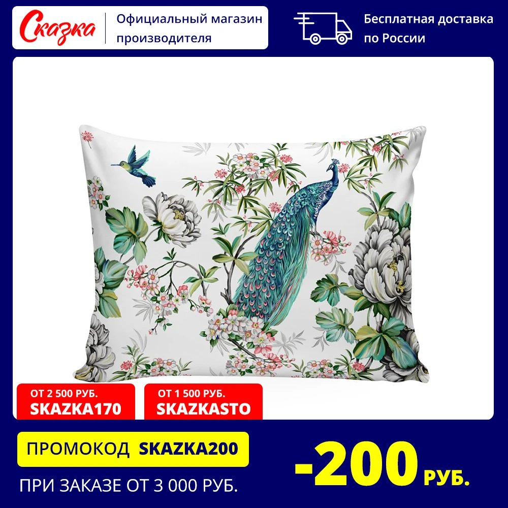 Комплект наволочки 2шт Cказка "Павлины"50*70 70*70 см молния 100% хлопок