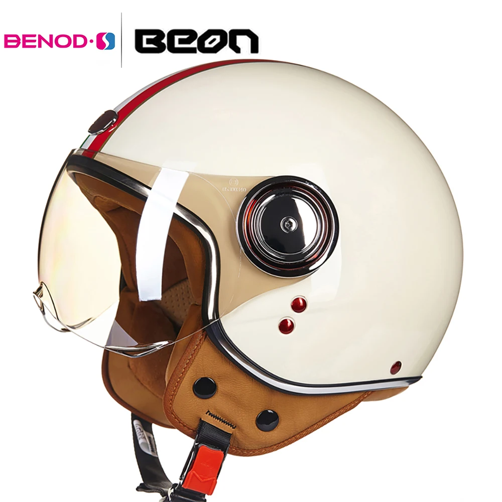 Мотоциклетный шлем BEON, винтажный шлем с открытым лицом для мужчин и женщин, 34