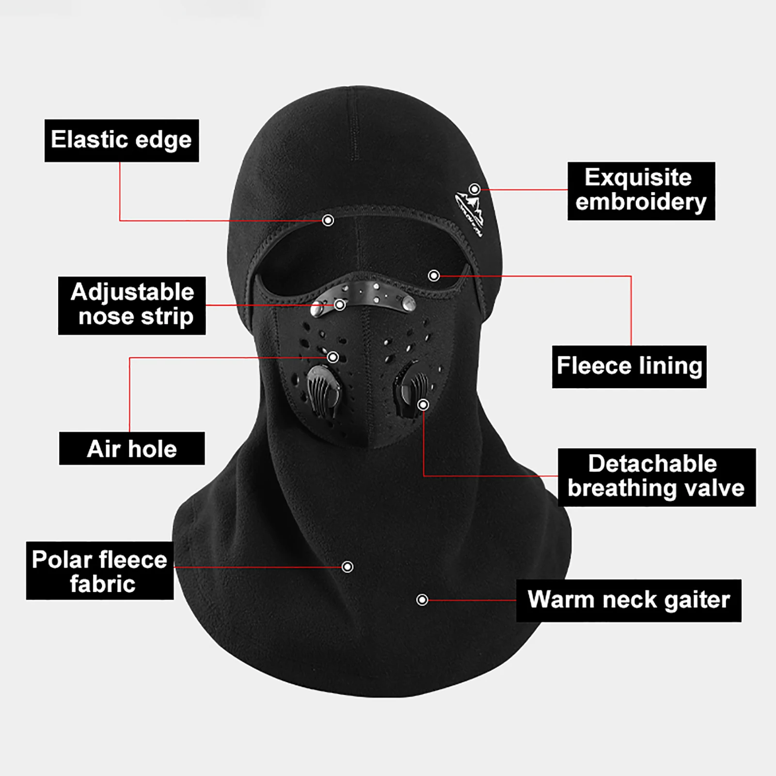 Защита лица с полным покрытием лица и шеи держит вас чрезвычайно тепло в холодную зиму. С флисовой подкладкой, очень мягкая и удобная. Конструкция дыхательного клапана защищает вас от ядовитых веществ в воздухе. Когда вы выходите зимой, надевайте это.