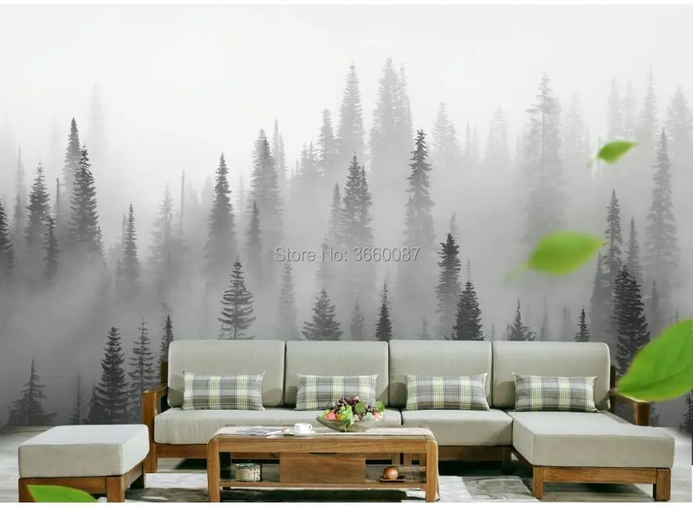 Настенные обои Bacaz с эффектом тумана и эффектом омбре, Настенные обои с ландшафтным пейзажем и деревьями, светлая природа, обои для фона, 3D наклейки