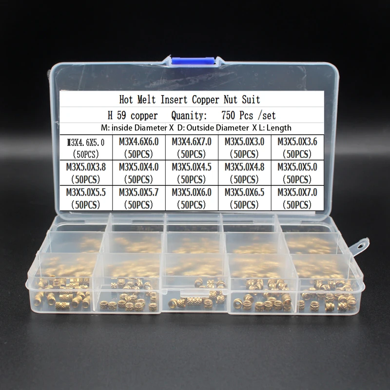 Набор латунных инкрустированных горячим расплавом гаек, набор термоформованных медных инкрустированных гаек SL двойная саржа, литые под давлением литые латунные гайки