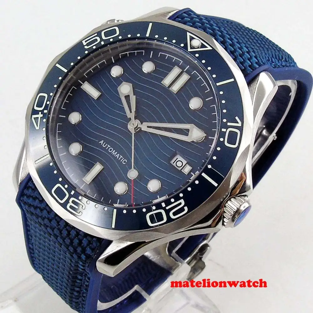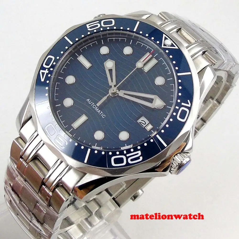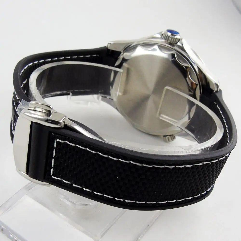 -- Механизм: Miyota 8215 / NH35 / Mingzhu 2813 механическое автоматическое движение.-- Чехол Размер: 41 мм в диаметре, 14 мм толщина-- Чехол Материал: 316L полностью нержавеющая сталь с керамический Безель-Чехол для защиты: 3 АТМ водонепроницаемый-Циферблат: синий/черный цвет; Светящиеся отметки и стрелки-Размер ремешка: ширина 20 мм-- Материал ремешка: браслет из нержавеющей стали или резиновая ткань-- Тип застежки: раскладная застежка-- Стекло: сапфировое стекло