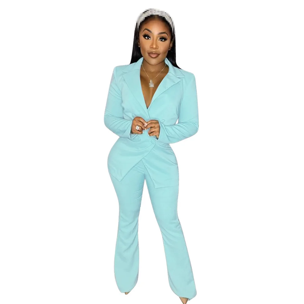 Комплект из двух предметов, женский костюм из двух предметов, костюм с длинным рукавом и брюки, привлекательная офисная осенняя одежда для женщин, женский комплект 2020