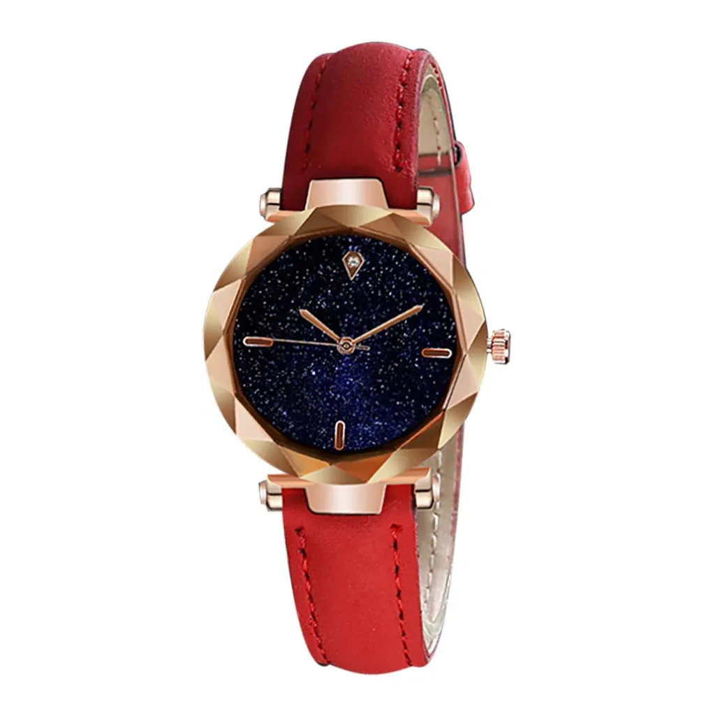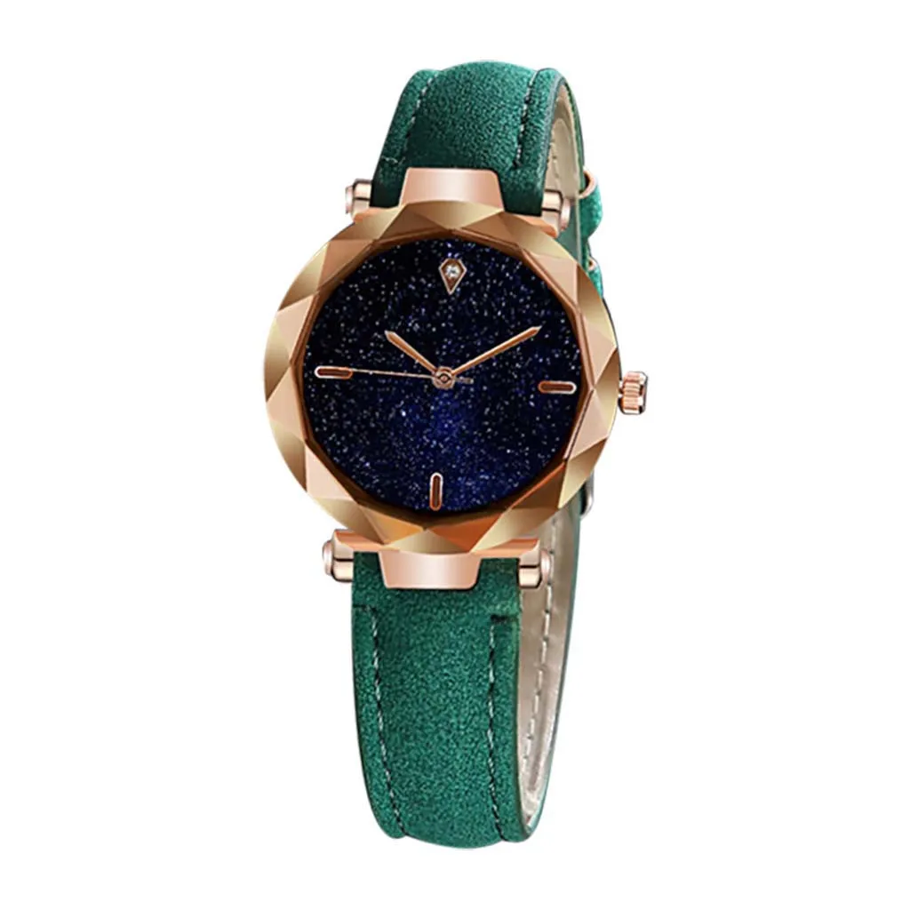 Прекрасный подарок для Друзья и семья Подходит для любого Повод Идеальный подарок для Мать, жена или друг. Участие в деловых мероприятиях Более уверенный и привлекательный Поверхность Звездное небо приносит больше покоя Звездный циферблат с Золотой ремешок позволяет вам сиять еще больше в толпе Модные тенденции подчеркивают личное очарованиеОсобенности: