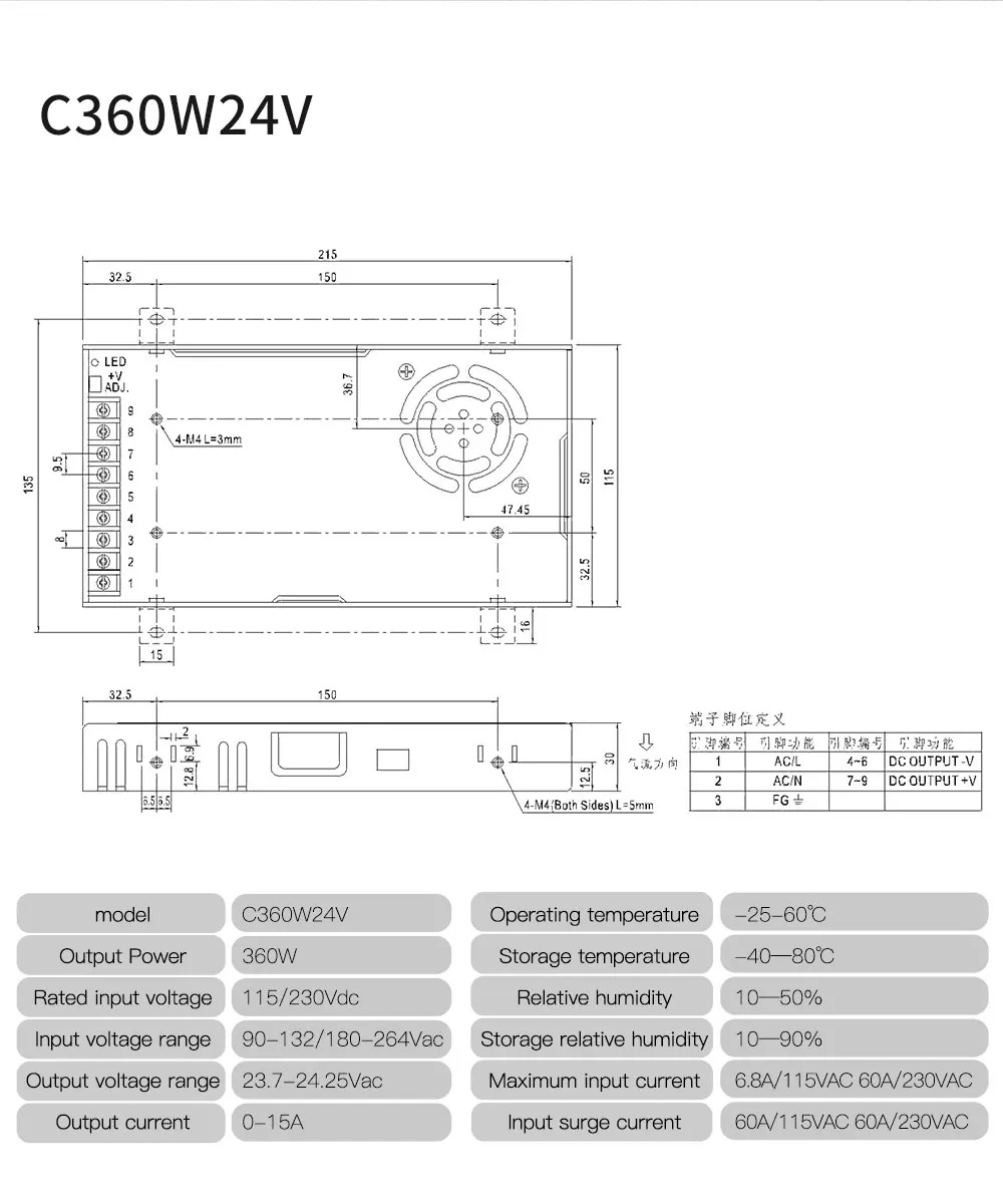24V15A360W импульсный источник питания, адаптер для принтера, Светодиодная лента светильник ветительный Трансформатор 12 В для 3D принтера, деталь, фотографияP360W24V