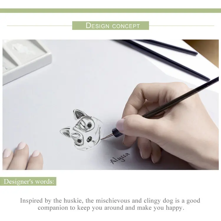 Бусина-Шарм в виде головы собаки, 100% дюйма, CMC836