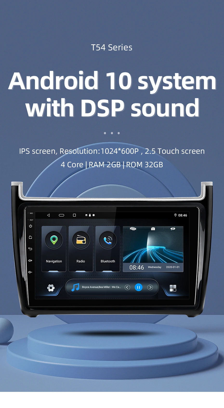 Автомагнитола ISUDAR T54 для VWVolkswagen POLO 5 2008-2020, мультимедийный проигрыватель с навигацией, Android 10, стереокамера, IPS, GPS, No 2 Din