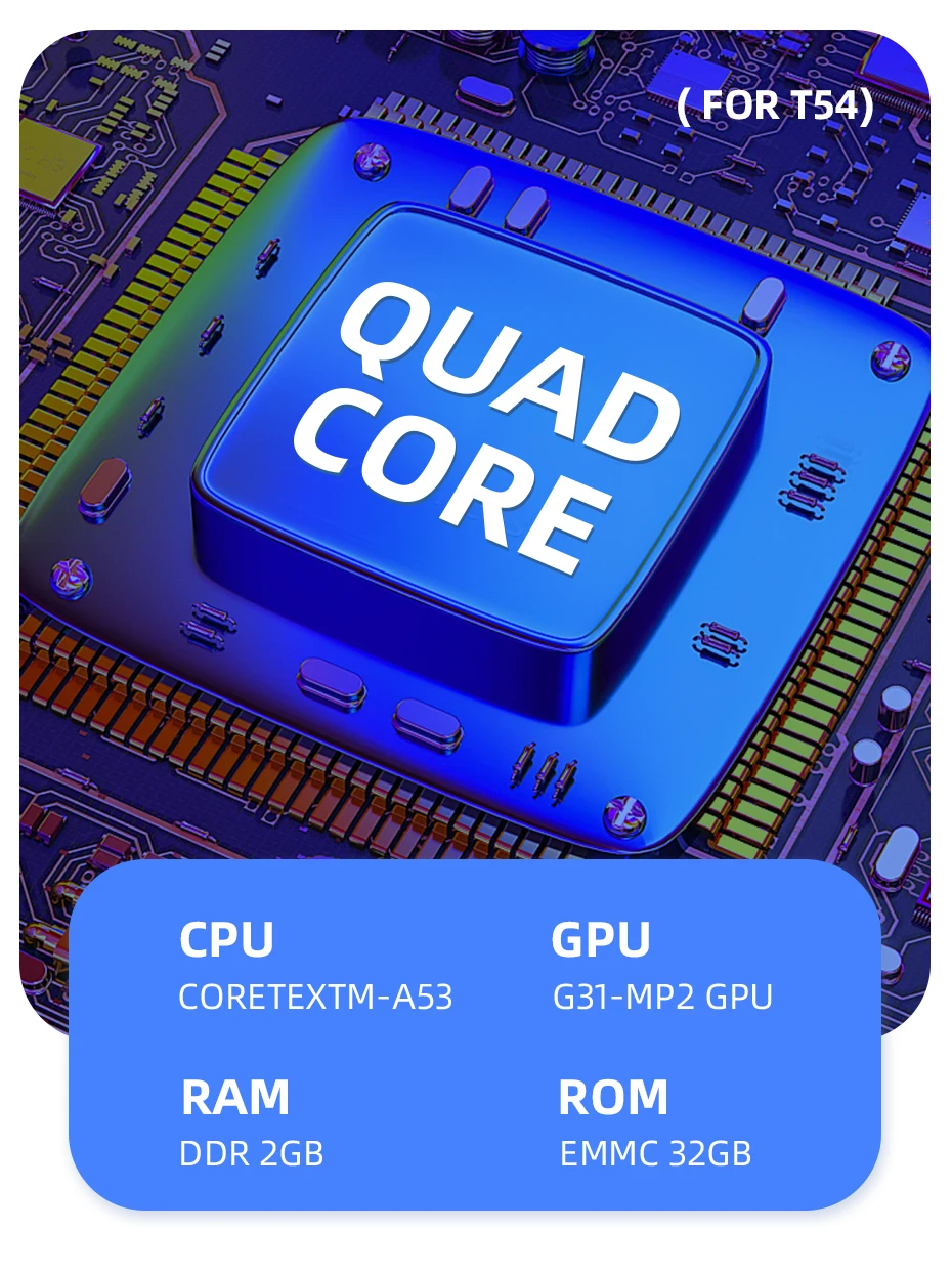 Четырехъядерный, Cortex ‐ A53, до 1,5 ГГц,RAM 2 ГБ, ROM 32 ГБ,Пробежка до 55000+