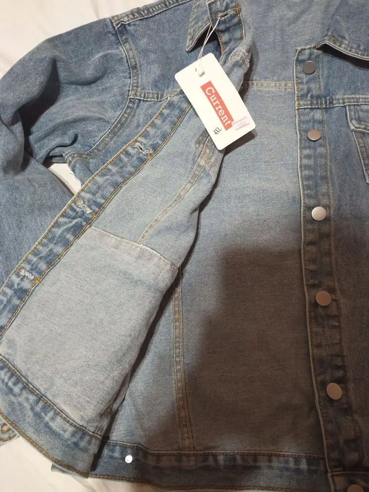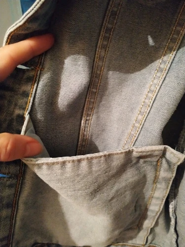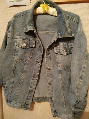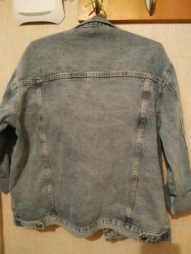 Честно говоря, не ожидала такого хорошего качества за столь небольшие деньги. Джинсовка красивого серо-голубого цвета. На ог 102 заказала XL- в самый раз, ни большая ни маленькая. Спина не пузырится. Пришлось почистить немного петли. Прорезные карманы очень глубокие. Порадовали и внутренние карманы. Куртка очень понравилась, рекомендую! Доставка 2 недели