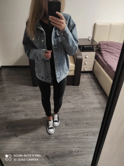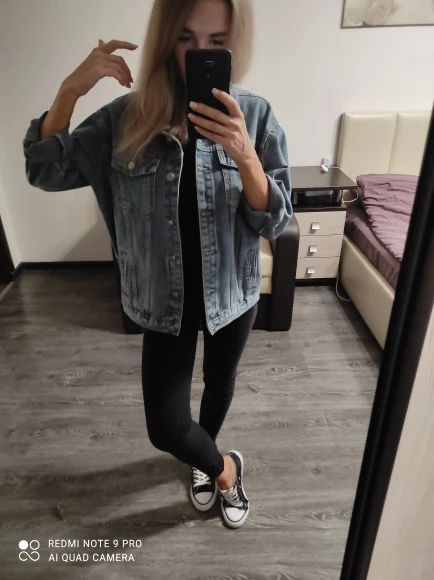 Джинсовка очень крутая! Качество отличное, очень добротная ткань, цвет идеальный для джинсы. Доставлена в Московскую область за 12 дней всего. Предполагаю, что они идут размер в размер. Но я хотела супероверсайз, поэтому заказала размер L. Мой российский размер xs, рост 159 см. Рукава довольно длинные, и это отлично! Без сомнений рекомендую продавца!!! Девочки, берите, не пожалеете, качество явно намного выше, чем ее цена!