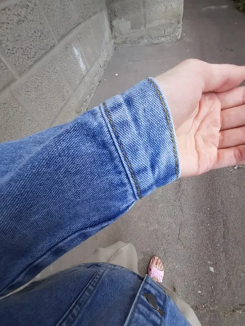 Цвет как на фото продавца,мои фото вышли другого оттенка!В Украину за 18 дней.На свой М брала М продавца-вышел аккуратный слегкаОверсайз)С размерной сеткой полное совпадение;при этом у меня худые запястья-манжеты на рукавах и на теле куртки с небольшим запасом.Длина рукава полная на рост 170см.Станный запах у куртки ,но думаю выветрится.Плотность ткани хорошая,плотноватая-такая и должна быть джинсовая куртка.Фурнитура в норме,швы плотные.К покупке рекомендую-качественная вещь за небольшие деньги(брала за 450 гривень).