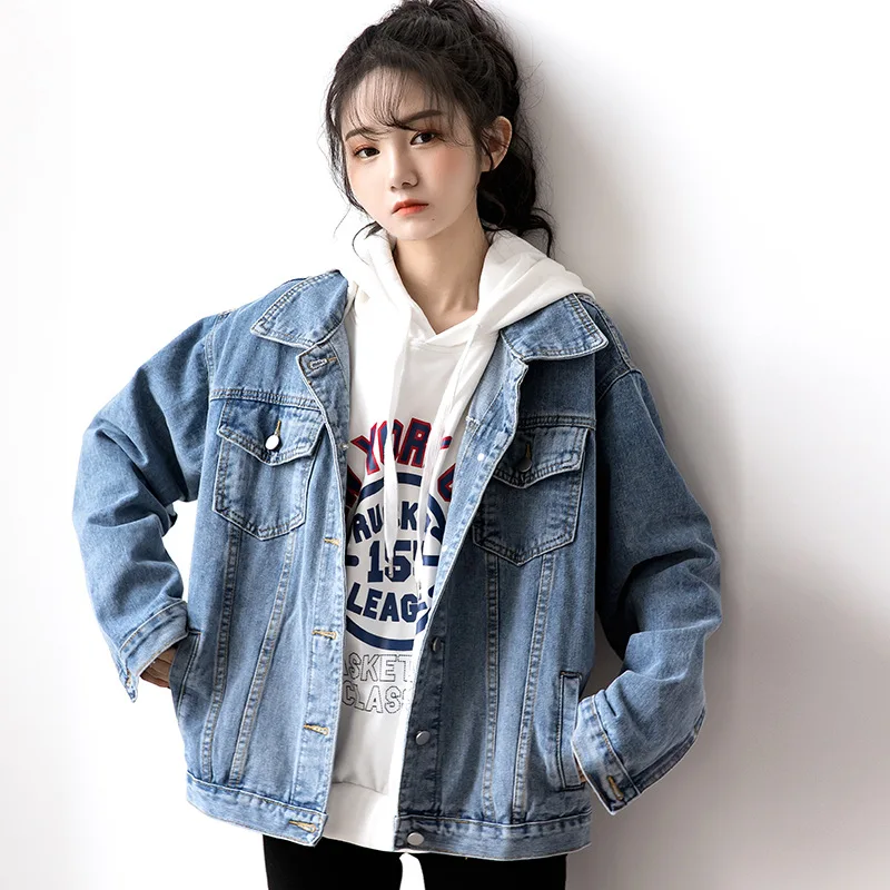Женская джинсовая куртка, осенне-зимняя Свободная куртка большого размера с длинным рукавом и отложным воротником, 2021