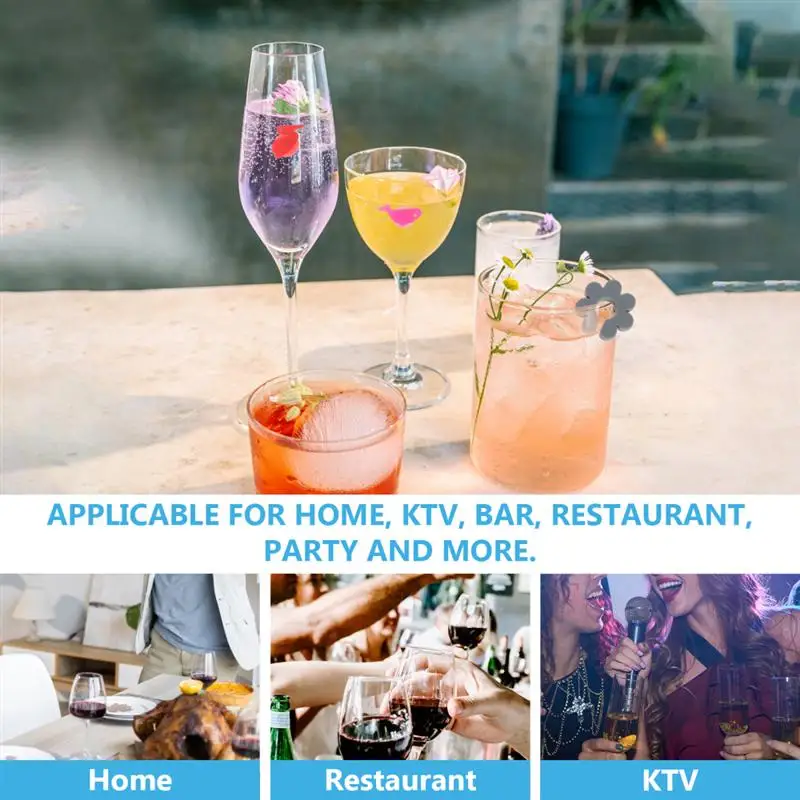 -Помогает четко идентифицировать гостей бокалами для вина с первого взгляда, добавляя декоративное и праздничное удовольствие на любом собрании.