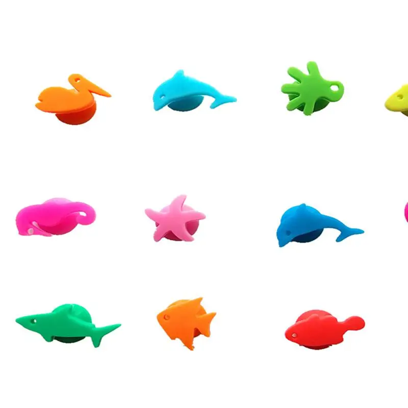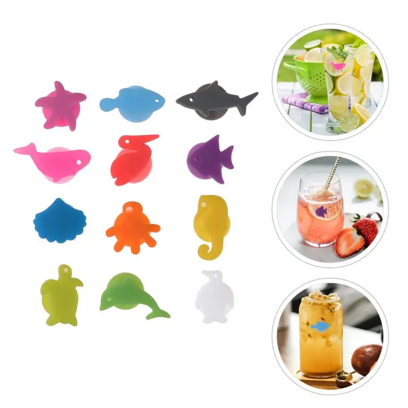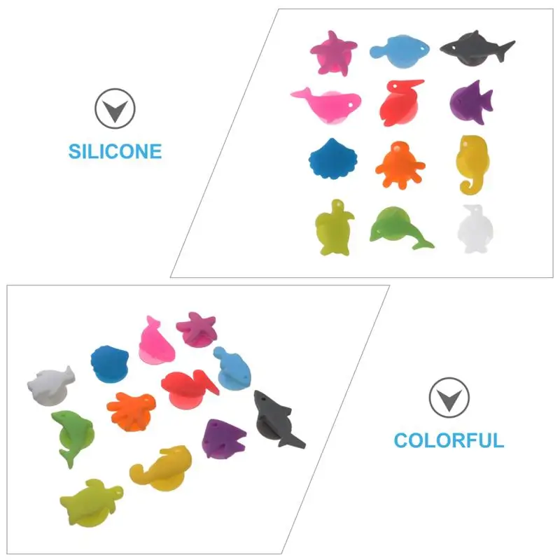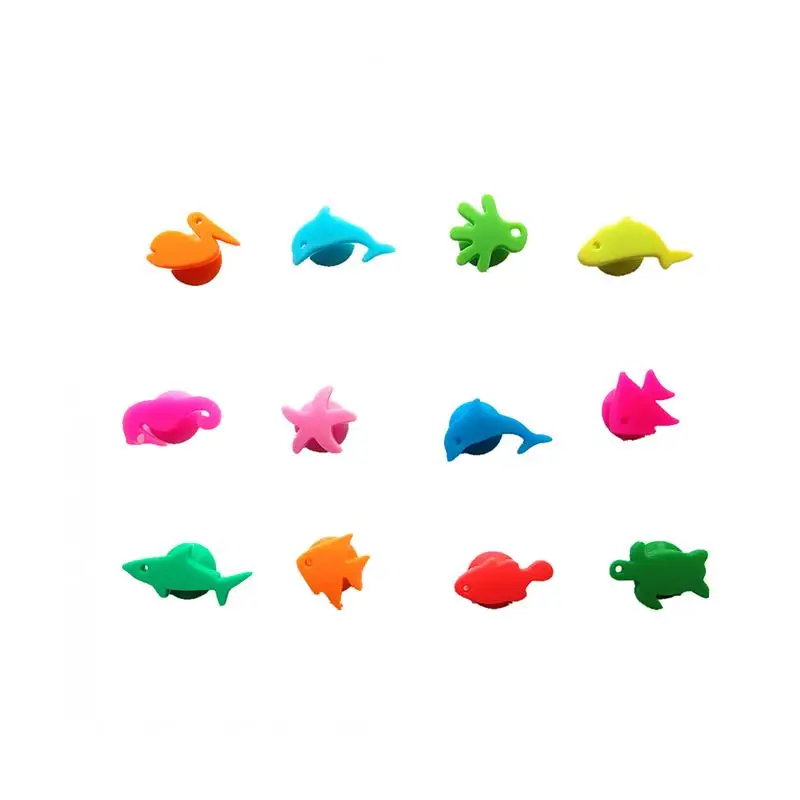 12 шт., силиконовые маркеры в виде морских животных, стакан для вин...