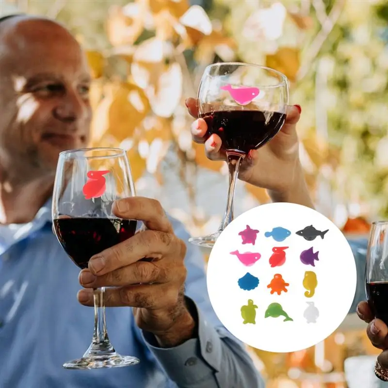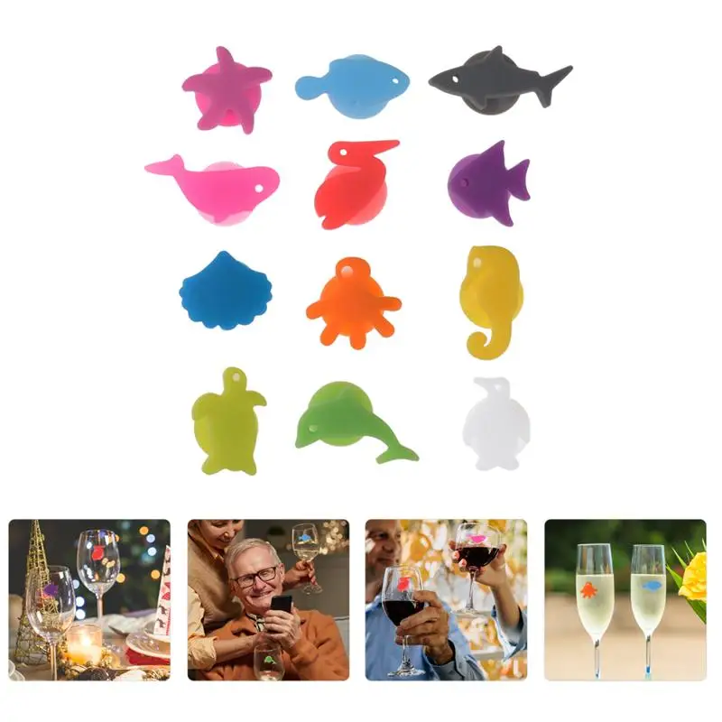12 шт. силиконовых кейсов морской Животные маркер на стакан для вин...