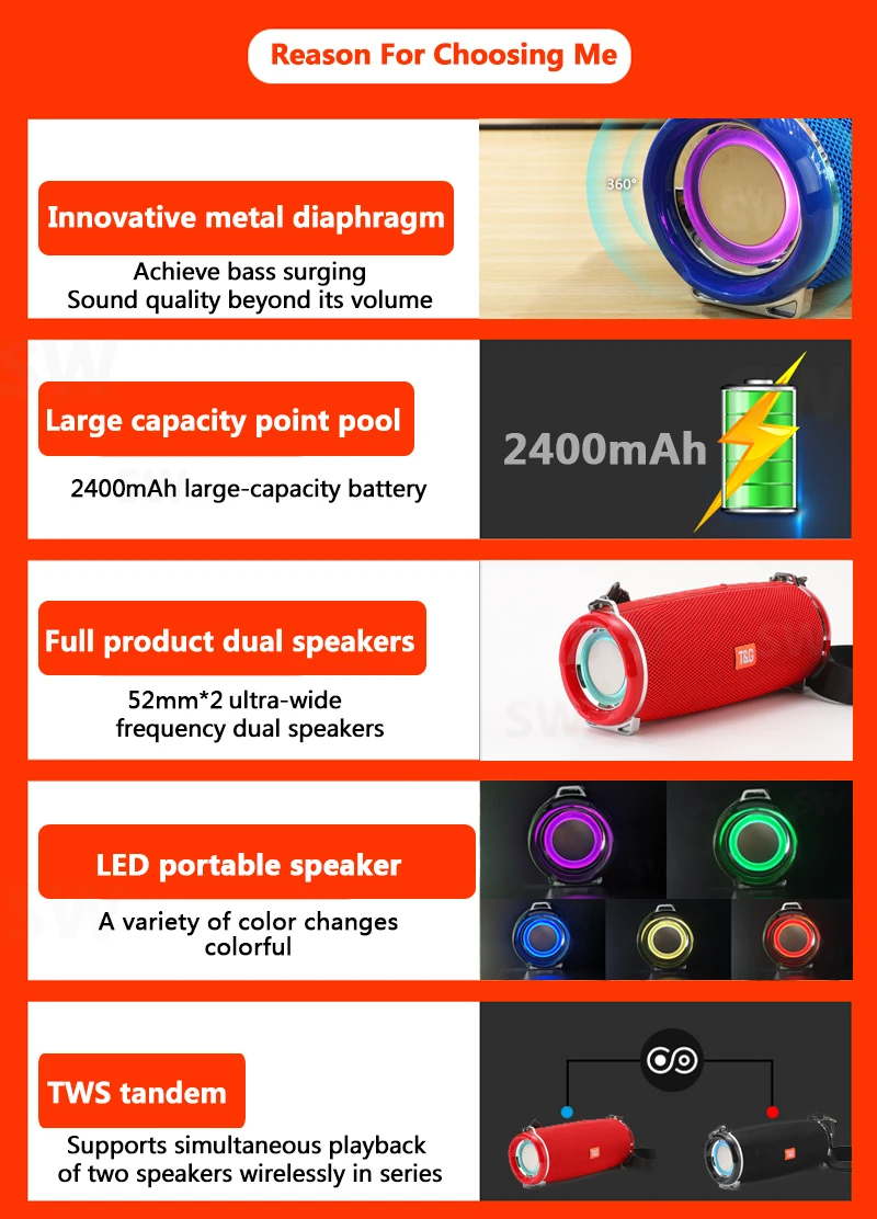 Портативный bluetooth динамик TG192, беспроводная водонепроницаемая Колонка мощностью 20 Вт, с поддержкой USB, AUX, TF, U-диск, сабвуфер