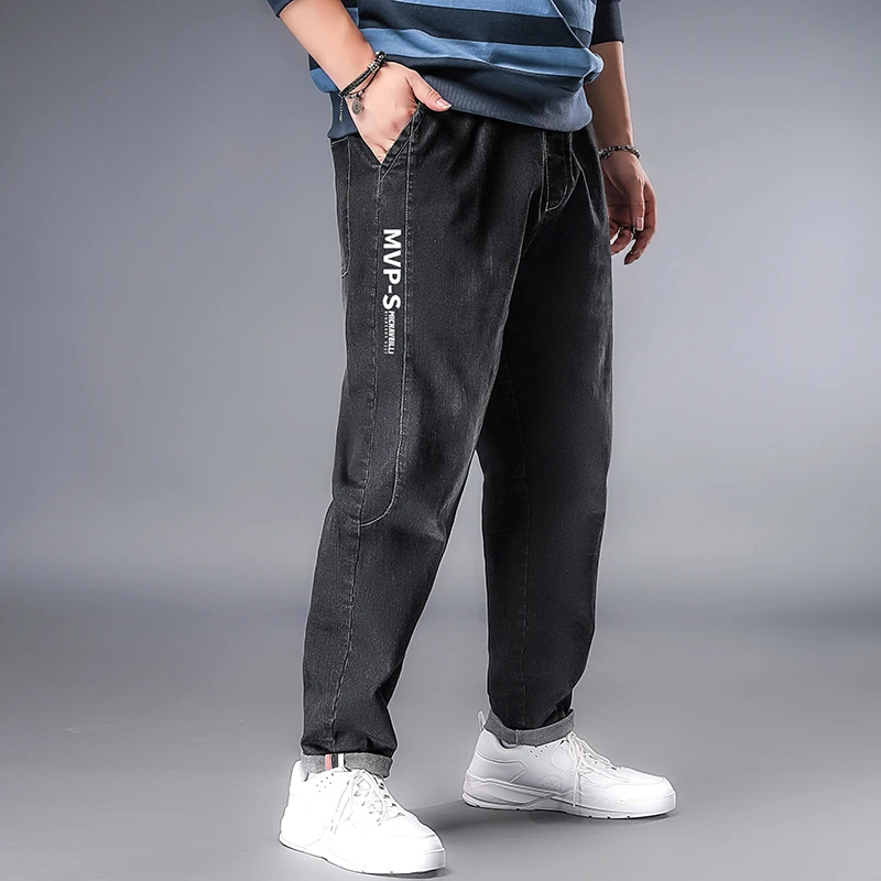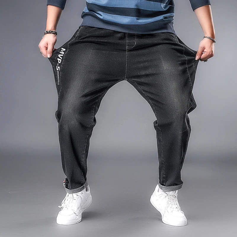 Мужские синие повседневные однотонные прямые джинсовые брюки большого размера 6XL 5XL XXXXL 2020 Мужская Уличная одежда в стиле Харадзюку повседневные джинсовые брюки мужская мода