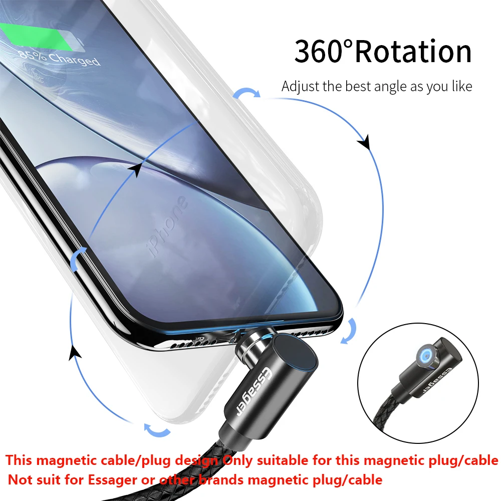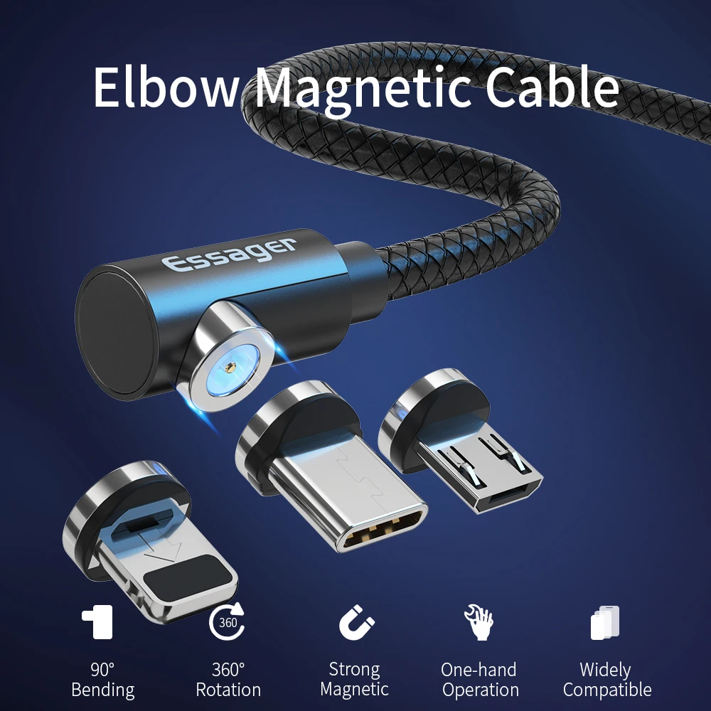 Магнитный USB-кабель Essager, кабель для быстрой зарядки Type-C, магнитное зарядное устройство, кабель Micro USB для Android мобильный телефон, USB-шнур с новым вращением