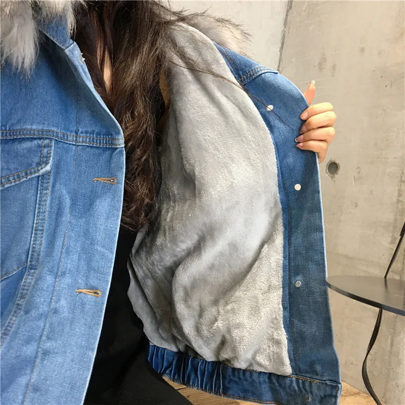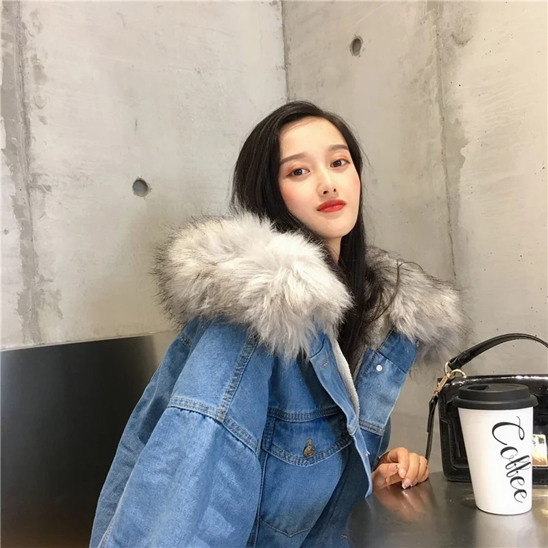 Вельветовая Плотная джинсовая куртка, женская зимняя куртка с большим меховым воротником, корейское пальто из овечьей шерсти, женское короткое пальто для студентов