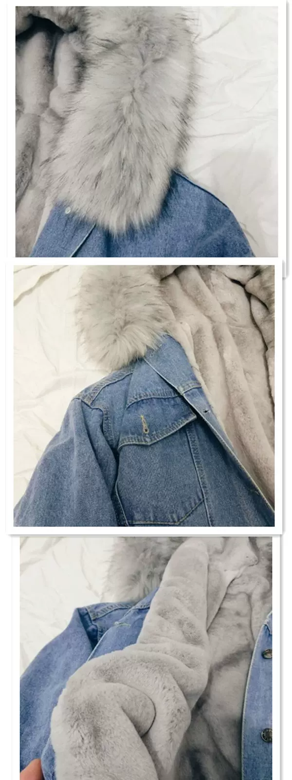 Новинка зимы 2021, джинсовое пальто из овечьей шерсти с большим мех...