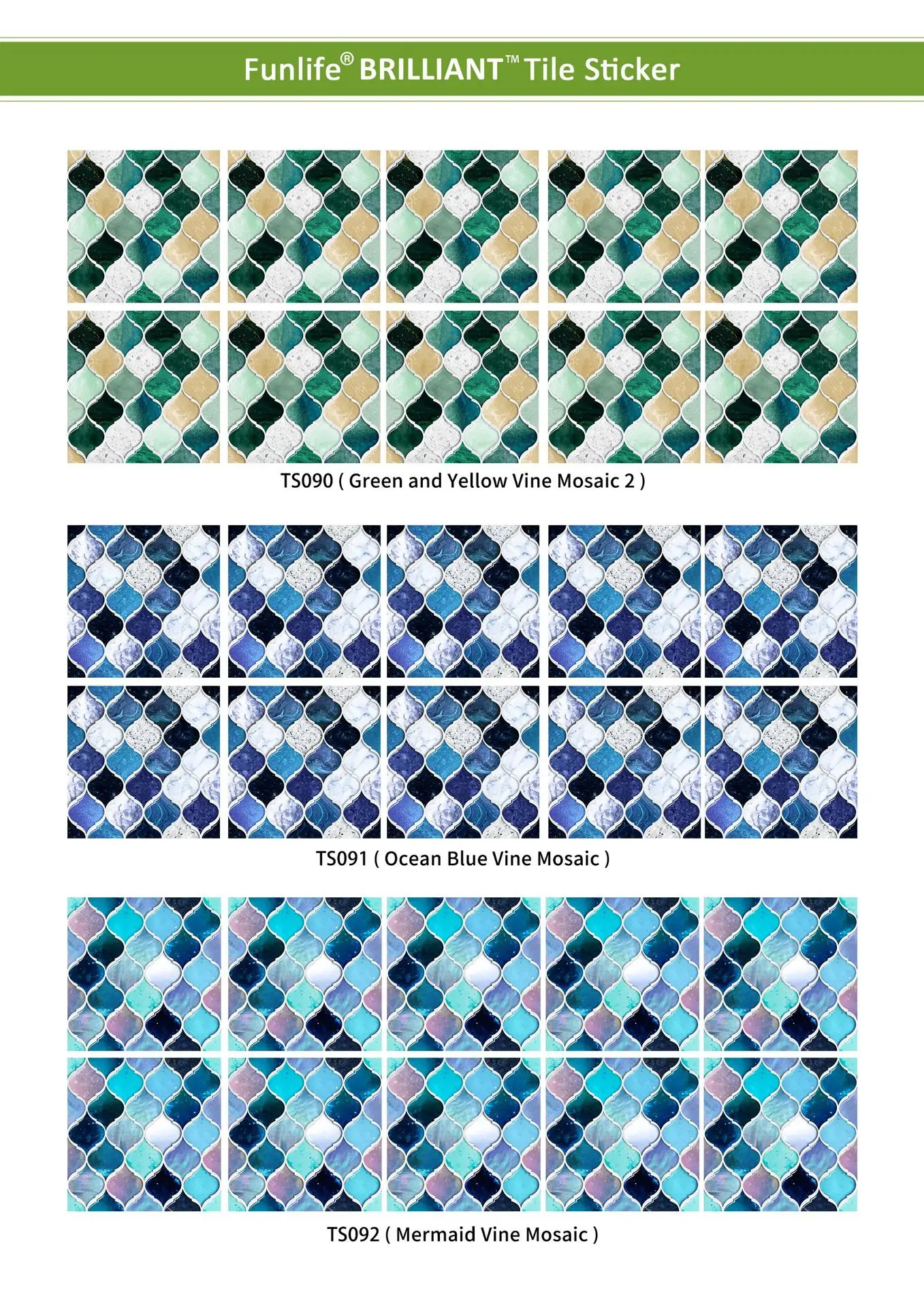 FunlifeЗеленая металлическая мозаичная Наклейка на стену, съемная м...